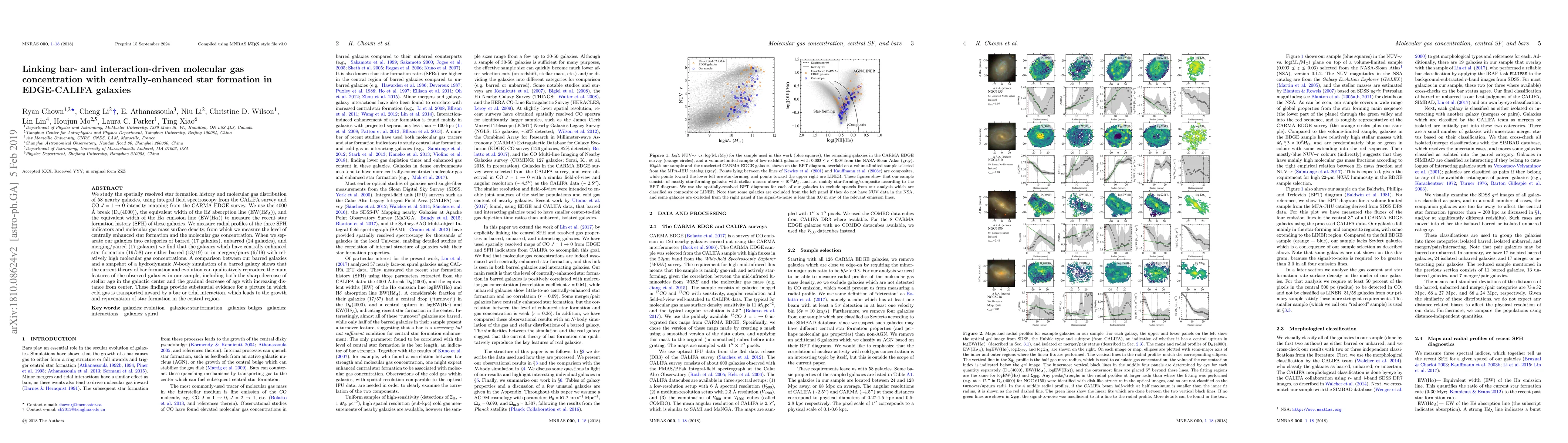 This study investigates the relationship between bar- and interaction-driven molecular gas concentration and centrally-enhanced star formation in 58 nearby galaxies using CALIBFA and CARMA data. It finds that galaxies with central star formation enhancements are predominantly barred or in mergers, suggesting that bars and tidal interactions drive inward gas transport, rejuvenating central star formation.