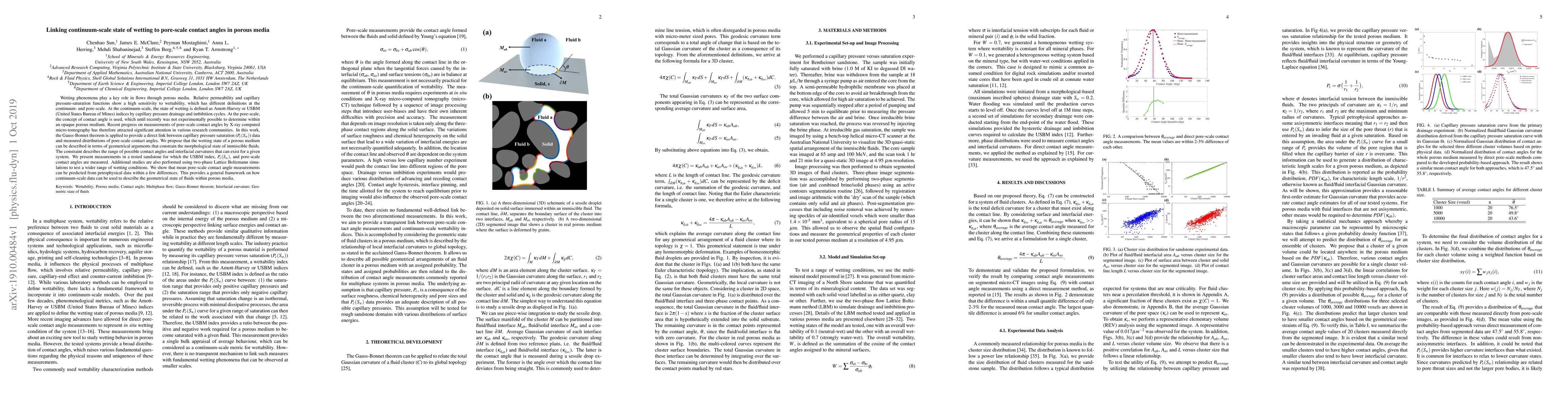 This paper establishes a connection between continuum-scale capillary pressure data and pore-scale contact angles in porous media using the Gauss-Bonnet theorem. It demonstrates that the wetting state can be described by geometrical constraints on contact angles and interfacial curvatures, validated through sandstone measurements and Lattice Boltzmann simulations.