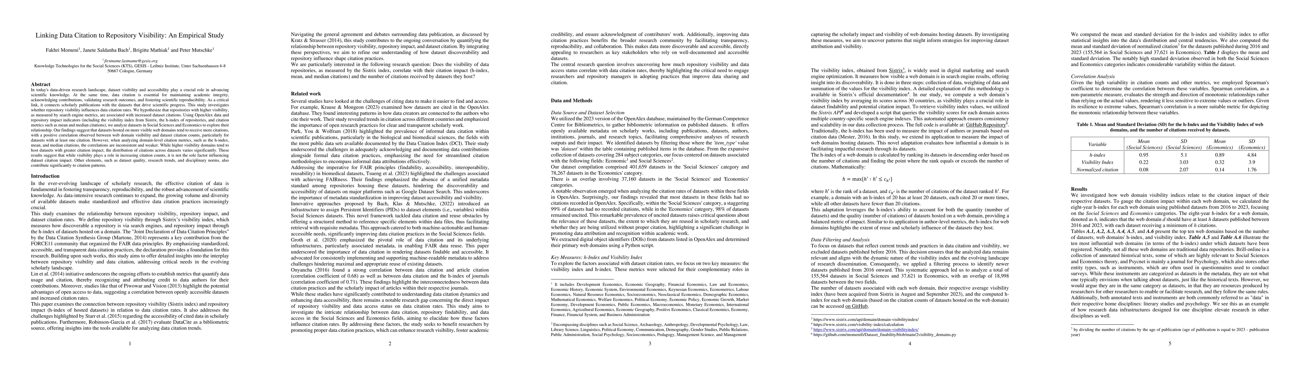 This study examines the link between dataset visibility on repositories and data citation rates, finding a positive correlation between visibility and citations, particularly for cited datasets. However, the relationship with domain-level citation metrics is inconsistent, suggesting that while visibility influences citation counts, other factors like dataset quality and research trends also significantly impact citation patterns.