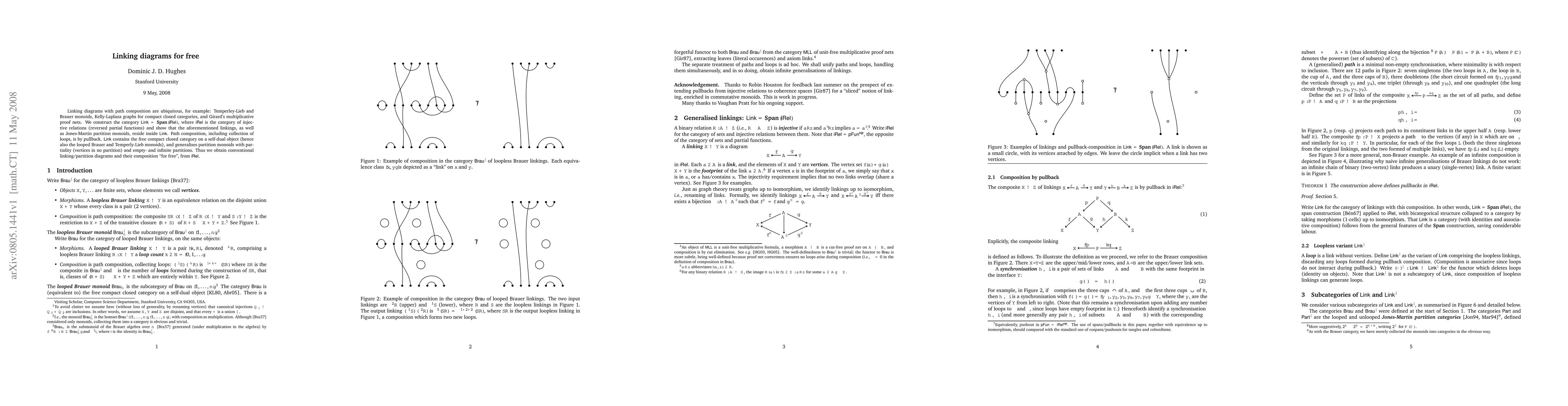 Linking diagrams with path composition are ubiquitous, for example: Temperley-Lieb and Brauer monoids, Kelly-Laplaza graphs for compact closed categories, and Girard's multiplicative proof nets. We construct the category Link=Span(iRel), where iRel is the category of injective relations (reversed partial functions) and show that the aforementioned linkings, as well as Jones-Martin partition monoids, reside inside Link. Path composition, including collection of loops, is by pullback. Link contains the free compact closed category on a self-dual object (hence also the looped Brauer and Temperly-Lieb monoids), and generalises partition monoids with partiality (vertices in no partition) and empty- and infinite partitions. Thus we obtain conventional linking/partition diagrams and their composition "for free", from iRel.