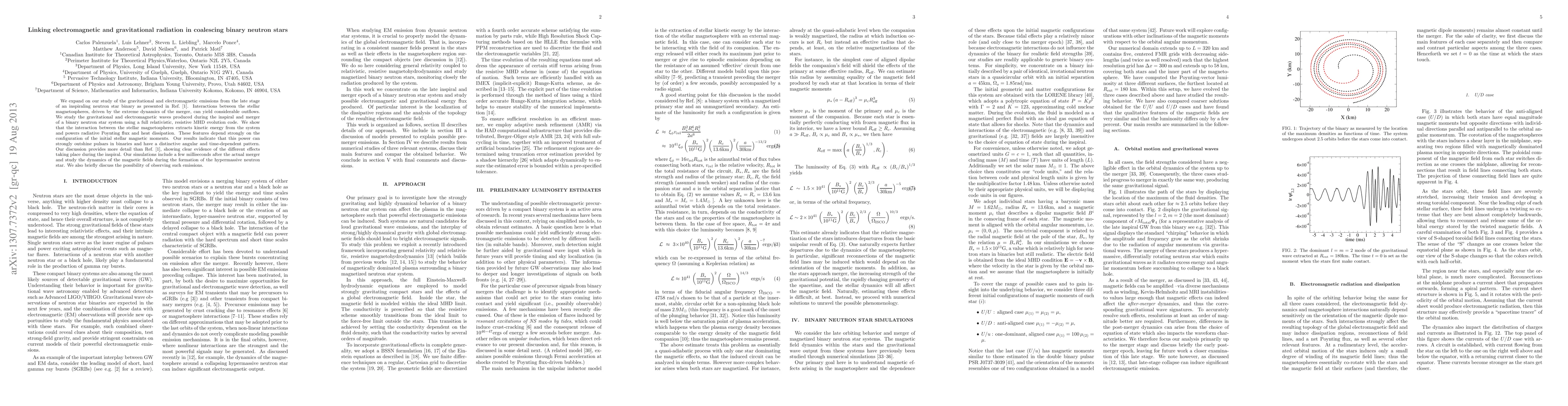 This study uses relativistic, resistive MHD evolution code to simulate gravitational and electromagnetic waves from merging neutron stars, finding that magnetosphere interactions power radiative Poynting flux and heat dissipation, which can significantly outshine pulsars in binaries and have distinct angular, time-dependent patterns. The simulation extends to a few milliseconds post-merger, revealing magnetic field dynamics in hypermassive neutron star formation.