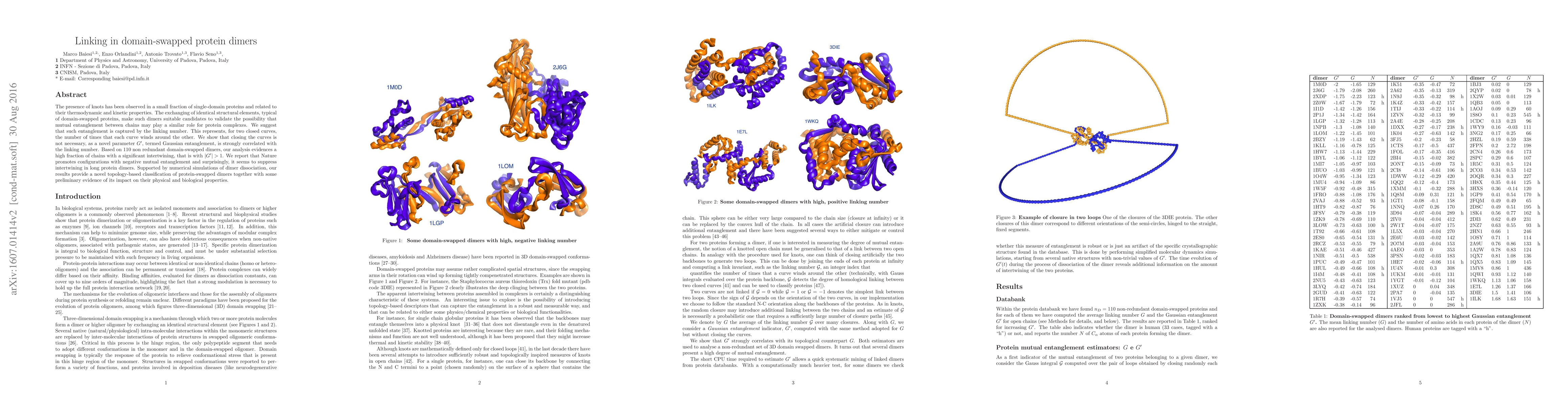 The presence of knots has been observed in a small fraction of single-domain proteins and related to their thermodynamic and kinetic properties. The exchanging of identical structural elements, typical of domain-swapped proteins, make such dimers suitable candidates to validate the possibility that mutual entanglement between chains may play a similar role for protein complexes. We suggest that such entanglement is captured by the linking number. This represents, for two closed curves, the number of times that each curve winds around the other. We show that closing the curves is not necessary, as a novel parameter $G'$, termed Gaussian entanglement, is strongly correlated with the linking number. Based on $110$ non redundant domain-swapped dimers, our analysis evidences a high fraction of chains with a significant intertwining, that is with $|G'| > 1$. We report that Nature promotes configurations with negative mutual entanglement and surprisingly, it seems to suppress intertwining in long protein dimers. Supported by numerical simulations of dimer dissociation, our results provide a novel topology-based classification of protein-swapped dimers together with some preliminary evidence of its impact on their physical and biological properties.