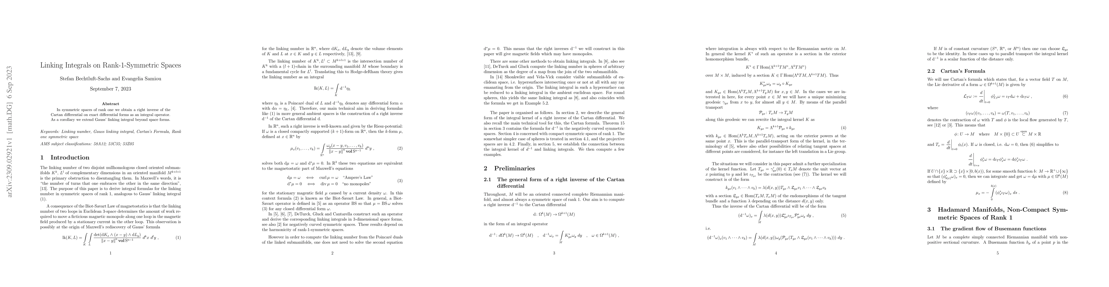 Summary: This paper establishes a right inverse for the Cartan differential on exact differential forms in rank-1 symmetric spaces using an integral operator, thereby extending the Gauss linking integral to broader symmetric spaces.