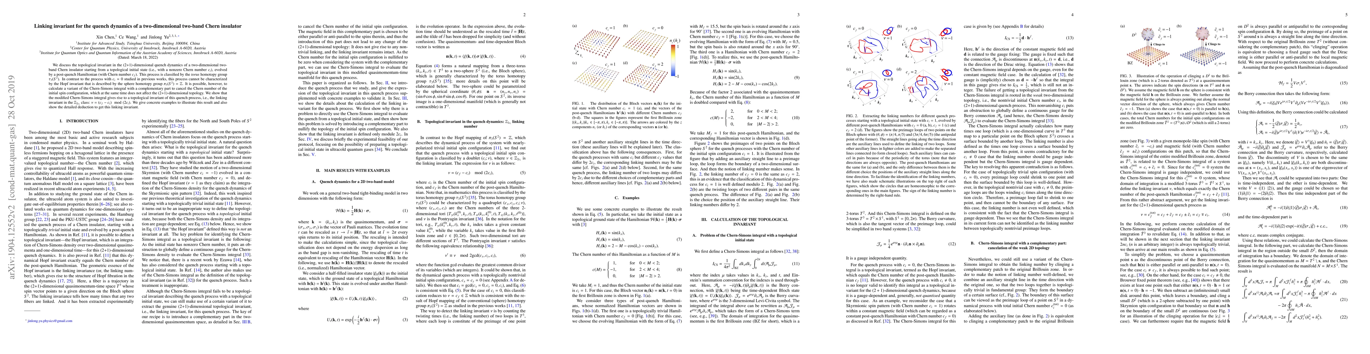 Researchers discovered a topological invariant for the quench dynamics of a two-dimensional two-band Chern insulator, which cannot be characterized by existing invariants, and found a new linking invariant based on the modified Chern-Simons integral.