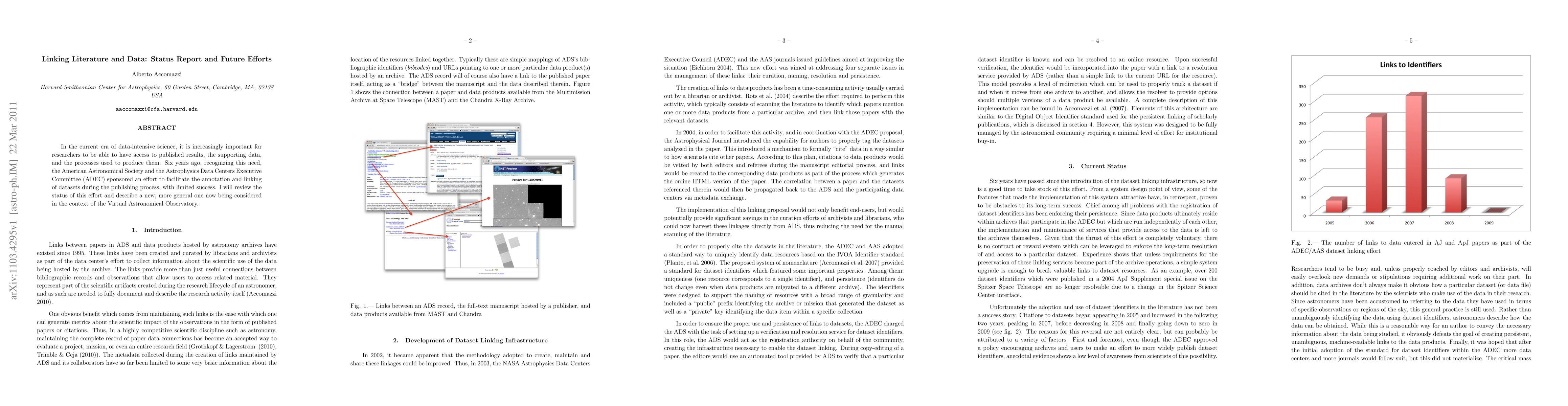 In the current era of data-intensive science, it is increasingly important for researchers to be able to have access to published results, the supporting data, and the processes used to produce them. Six years ago, recognizing this need, the American Astronomical Society and the Astrophysics Data Centers Executive Committee (ADEC) sponsored an effort to facilitate the annotation and linking of datasets during the publishing process, with limited success. I will review the status of this effort and describe a new, more general one now being considered in the context of the Virtual Astronomical Observatory.