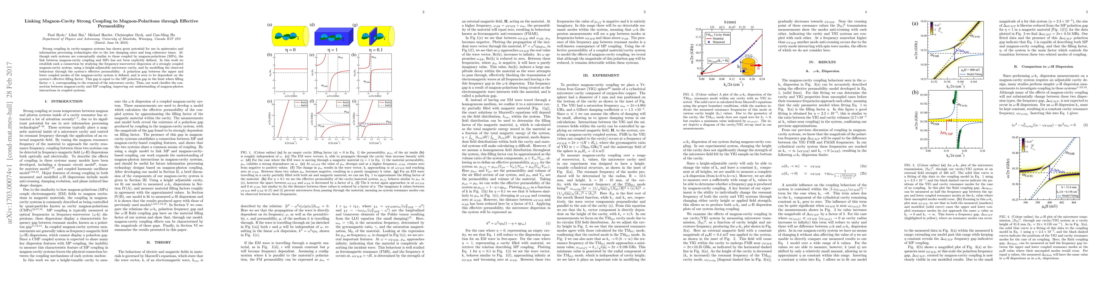 Strong coupling in cavity-magnon systems has shown great potential for use in spintronics and information processing technologies due to the low damping rates and long coherence times. Although such systems are conceptually similar to those coupled by magnon-polaritons (MPs), the link between magnon-cavity coupling and MPs has not been explicitly defined. In this work we establish such a connection by studying the frequency-wavevector dispersion of a strongly coupled magnon-cavity system, using a height-adjustable microwave cavity, and by modelling the observed behaviour through the system's effective permeability. A polariton gap between the upper and lower coupled modes of the magnon-cavity system is defined, and is seen to be dependent on the system's effective filling factor. This gap is equal to the MP polariton gap in the limit where filling factor = 1, corresponding to the removal of the microwave cavity. Thus, our work clarifies the connection between magnon-cavity and MP coupling, improving our understanding of magnon-photon interactions in coupled systems.