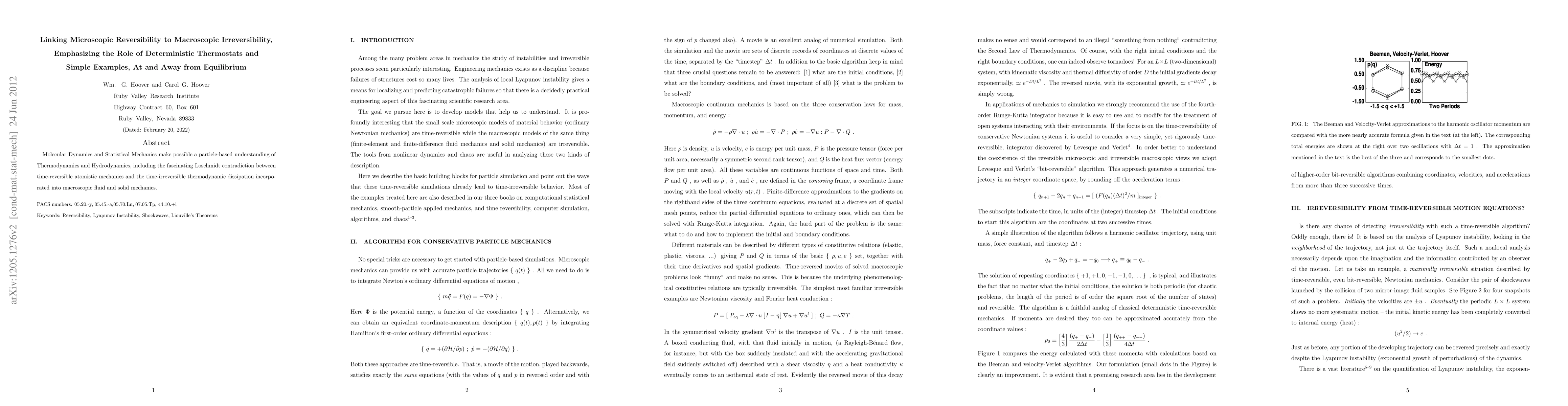 Molecular Dynamics and Statistical Mechanics make possible a particle-based understanding of Thermodynamics and Hydrodynamics, including the fascinating Loschmidt contradiction between time-reversible atomistic mechanics and the time-irreversible thermodynamic dissipation incorporated into macroscopic fluid and solid mechanics.