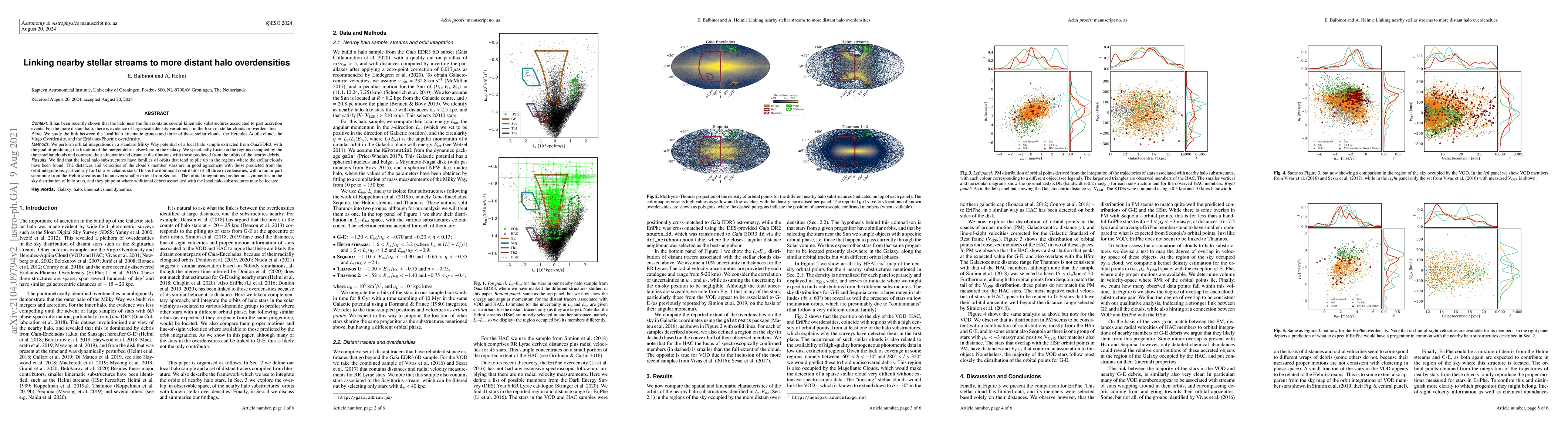 This paper investigates the connection between nearby stellar streams and more distant halo overdensities by linking local halo kinematic groups to three stellar clouds: Hercules-Aquila, Virgo Overdensity, and Eridanus-Phoenix. The study uses orbital integrations to predict the merger debris's location, finding strong agreement between the predicted and observed kinematic and distance distributions, particularly for Gaia-Enceladus stars.