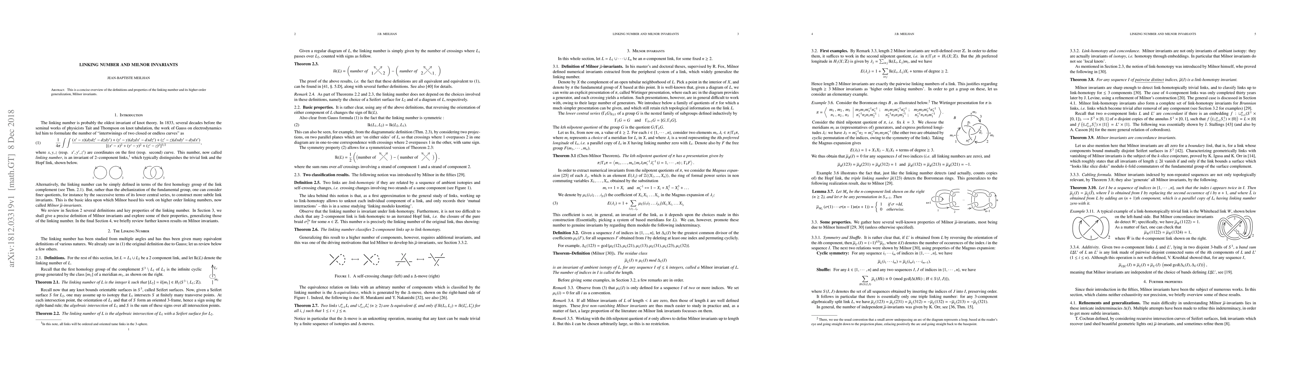 Summary: This paper provides an overview of the linking number, a measure of the entanglement of two curves, and introduces Milnor invariants, higher-order generalizations that extend this concept to higher dimensions. It explores their definitions and fundamental properties.