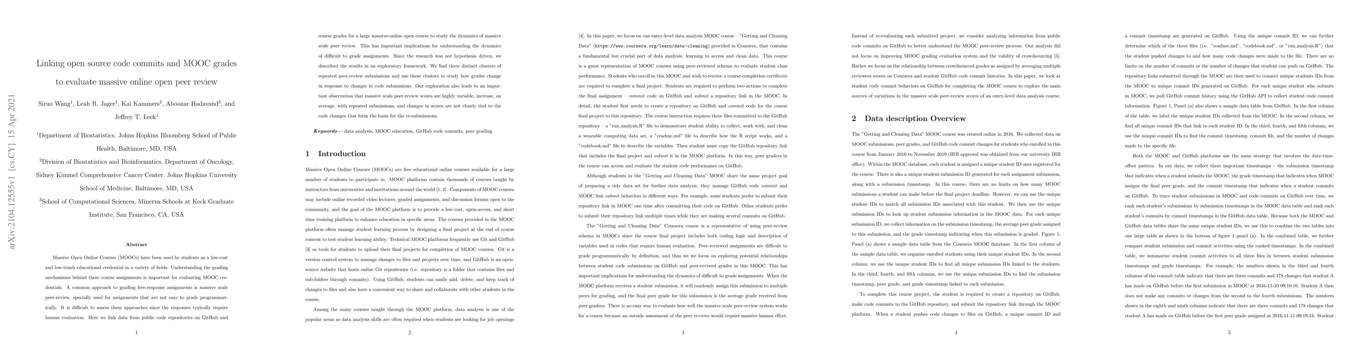 This study links GitHub code commits and MOOC grades to evaluate massive online open peer review, revealing three distinct clusters of repeated peer-review submissions. The research finds that peer review scores are highly variable, tend to increase with repeated submissions, and are not closely tied to the actual code changes made.