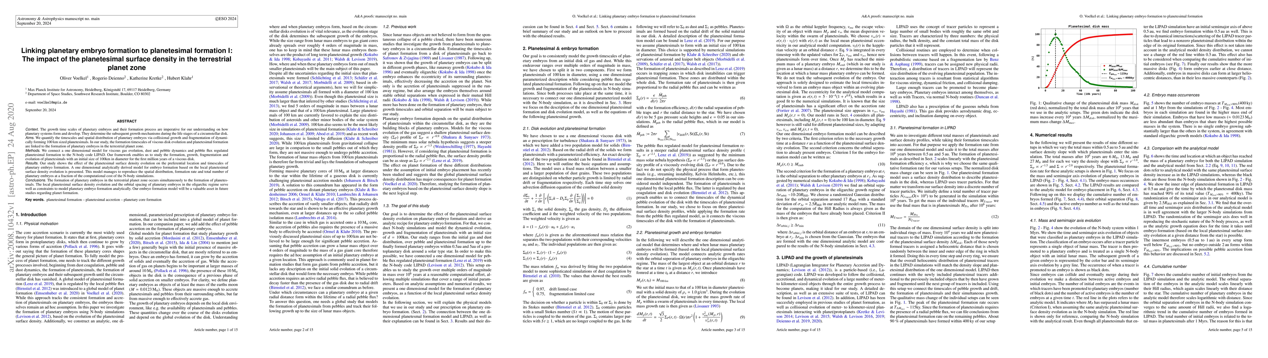 This paper investigates the relationship between planetesimal surface density and the formation of planetary embryos in the terrestrial planet zone, demonstrating that embryo formation occurs concurrently with planetesimal formation. The study employs a one-dimensional model to link viscous disk evolution and planetesimal dynamics, providing a computationally efficient method to predict embryo formation and distribution.