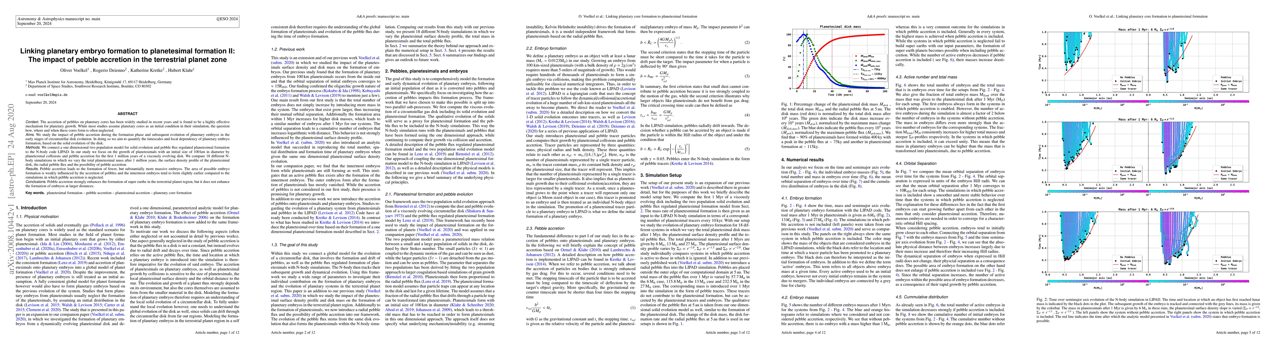 The accretion of pebbles on planetary cores has been widely studied in recent years and is found to be a highly effective mechanism for planetary growth. While most studies assume planetary cores as an initial condition in their simulation, the question how, where and when these cores form is often neglected. We study the impact of pebble accretion during the formation phase and subsequent evolution of planetary embryos in the early stages of circumstellar disk evolution. In doing so we aim to quantify the timescales and local dependency of planetary embryo formation, based on the solid evolution of the disk. We connect a one dimensional two population model for solid evolution and pebble flux regulated planetesimal formation to the N-body code LIPAD. In our study we focus on the growth of planetesimals with an initial size of 100 km in diameter by planetesimal collisions and pebble accretion for the first 1 million years of a viscously evolving disk. We compare 18 different N-body simulations in which we vary the total planetesimal mass after 1 million years, the surface density profile of the planetesimal disk, the radial pebble flux and the possibility of pebble accretion. Pebble accretion leads to the formation of fewer, but substantially more massive embryos. The area of possible embryo formation is weakly influenced by the accretion of pebbles and the innermost embryos tend to form slightly earlier compared to the simulations in which pebble accretion is neglected. Pebble accretion strongly enhances the formation of super earths in the terrestrial planet region, but it does not enhance the formation of embryos at larger distances.