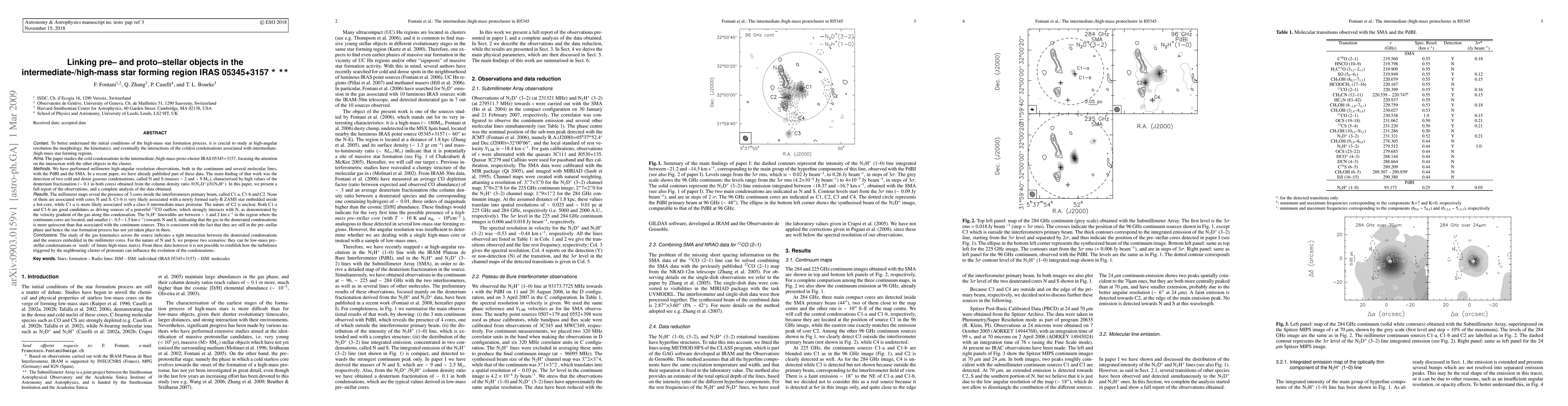 To better understand the initial conditions of the high-mass star formation process, it is crucial to study at high-angular resolution the morphology, the kinematics, and eventually the interactions of the coldest condensations associated with intermediate-/high-mass star forming regions. The paper studies the cold condensations in the intermediate-/high-mass proto-cluster IRAS 05345+3157, focusing the attention on the interaction with the other objects in the cluster. We have performed millimeter high-angular resolution observations, both in the continuum and several molecular lines, with the PdBI and the SMA. In a recent paper, we have already published part of these data. The main finding of that work was the detection of two cold and dense gaseous condensations, called N and S (masses ~2 and ~9 M_sun), characterised by high values of the deuterium fractionation (~0.1 in both cores). In this paper, we present a full report of the observations, and a complete analysis of the data obtained. The millimeter maps reveal the presence of 3 cores inside the interferometers primary beam, called C1-a, C1-b and C2. None of them are associated with cores N and S. C1-b is very likely associated with a newly formed early-B ZAMS star embedded inside a hot-core, while C1-a is more likely associated with a class 0 intermediate-mass protostar. The nature of C2 is unclear. Both C1-a and C1-b are good candidates as driving sources of a powerful CO outflow, which strongly interacts with N and S, as demonstrated by the velocity gradient across both condensations. Our major conclusion is that the chemical properties of these pre-stellar cores are similar to those observed in low-mass isolated ones, while the kinematics is dominated by the turbulence triggered by the CO outflow and can influece their evolution.