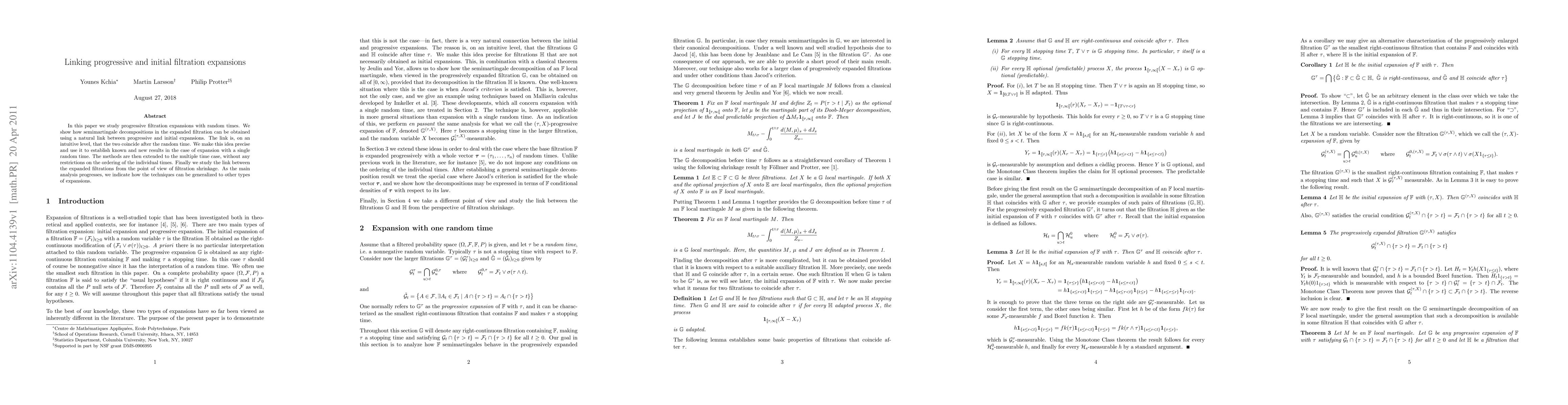 This paper explores the connection between progressive and initial filtration expansions with random times, demonstrating how semimartingale decompositions can be derived through this link. It extends the findings to multiple random times and discusses the implications for filtration shrinkage.