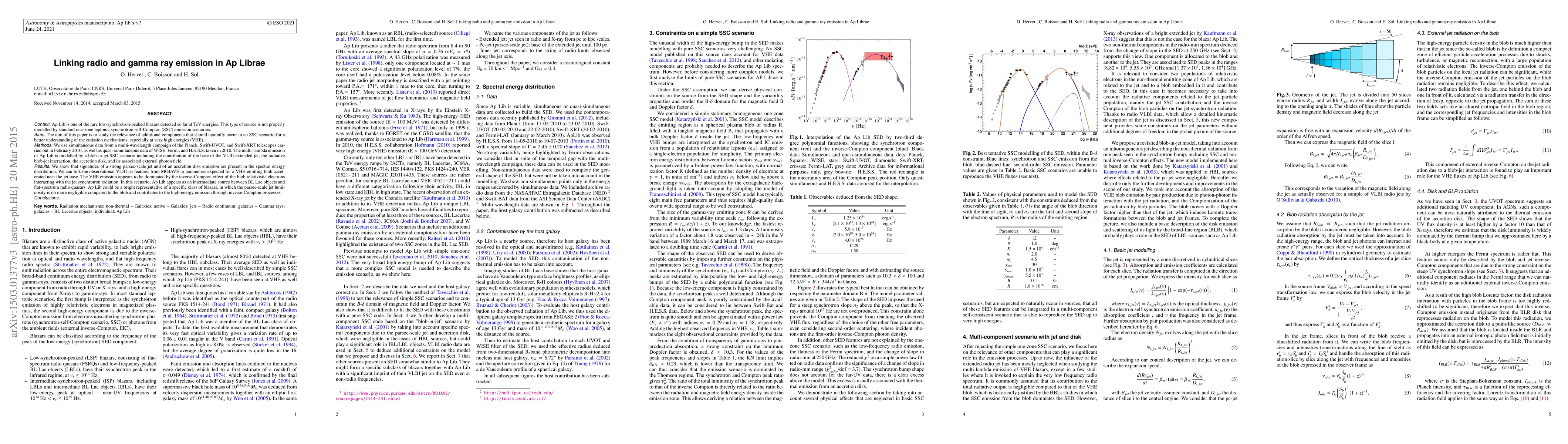 Ap Lib is one of the rare Low Synchrotron Peaked blazars detected so far at TeV energies. This type of source is not properly modelled by standard one-zone leptonic Synchrotron-self-Compton (SSC) emission scenarios. The aim of this paper is to study the relevance of additional components which should naturally occur in a SSC scenario for a better understanding of the emission mechanisms, especially at very high energies (VHE). Methods. We use simultaneous data from a multi-wavelength campaign of Planck, Swift-UVOT and Swift-XRT telescopes carried out in February 2010, as well as quasi-simultaneous data of WISE, Fermi and H.E.S.S. taken in 2010. The multi-lambda emission of Ap Lib is modelled by a blob-in-jet SSC scenario including the contribution of the base of the VLBI extended jet, the radiative blob-jet interaction, the accretion disk and its associated external photon field. We show that signatures of a strong parsec-scale jet and of an accretion disk emission are present in the SED. We can link the observationnal VLBI jet features from MOJAVE to parameters expected for a VHE emitting blob accelerated near the jet base. The VHE emission appears to be dominated by the inverse-Compton effect of the blob relativistic electrons interacting with the jet synchrotron radiation. In such scenario Ap Lib appears as an intermediate source between BL Lac objects and Flat Spectrum Radio Quasars. Ap Lib could be a bright representative of a specific class of blazars, in which the parsec-scale jet luminosity is no more negligible compared to the blob and contributes to the high energy emission via inverse Compton processes.
