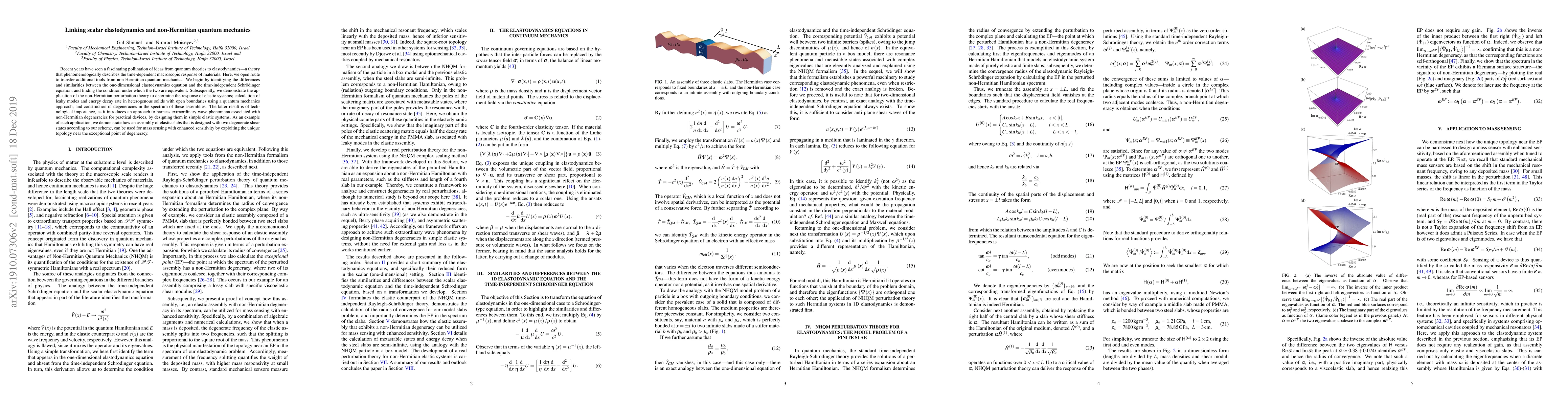 Recent years have seen a fascinating pollination of ideas from quantum theories to elastodynamics---a theory that phenomenologically describes the time-dependent macroscopic response of materials. Here, we open route to transfer additional tools from non-Hermitian quantum mechanics. We begin by identifying the differences and similarities between the one-dimensional elastodynamics equation and the time-independent Schrodinger equation, and finding the condition under which the two are equivalent. Subsequently, we demonstrate the application of the non-Hermitian perturbation theory to determine the response of elastic systems; calculation of leaky modes and energy decay rate in heterogenous solids with open boundaries using a quantum mechanics approach; and construction of degeneracies in the spectrum of these assemblies. The latter result is of technological importance, as it introduces an approach to harness extraordinary wave phenomena associated with non-Hermitian degeneracies for practical devices, by designing them in simple elastic systems. As an example of such application, we demonstrate how an assembly of elastic slabs that is designed with two degenerate shear states according to our scheme, can be used for mass sensing with enhanced sensitivity by exploiting the unique topology near the exceptional point of degeneracy.