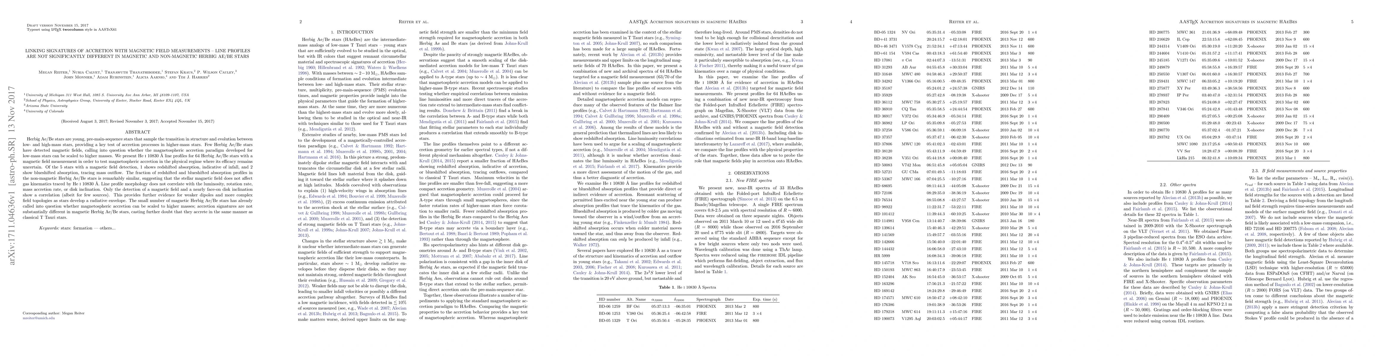 This study investigates the accretion signatures in Herbig Ae/Be stars using He I 10830 Å line profiles, finding no significant difference in line profiles between magnetic and non-magnetic stars. The results suggest that stellar magnetic fields do not influence gas kinematics in these stars, casting doubt on the scaling of magnetospheric accretion from low-mass stars to higher masses.