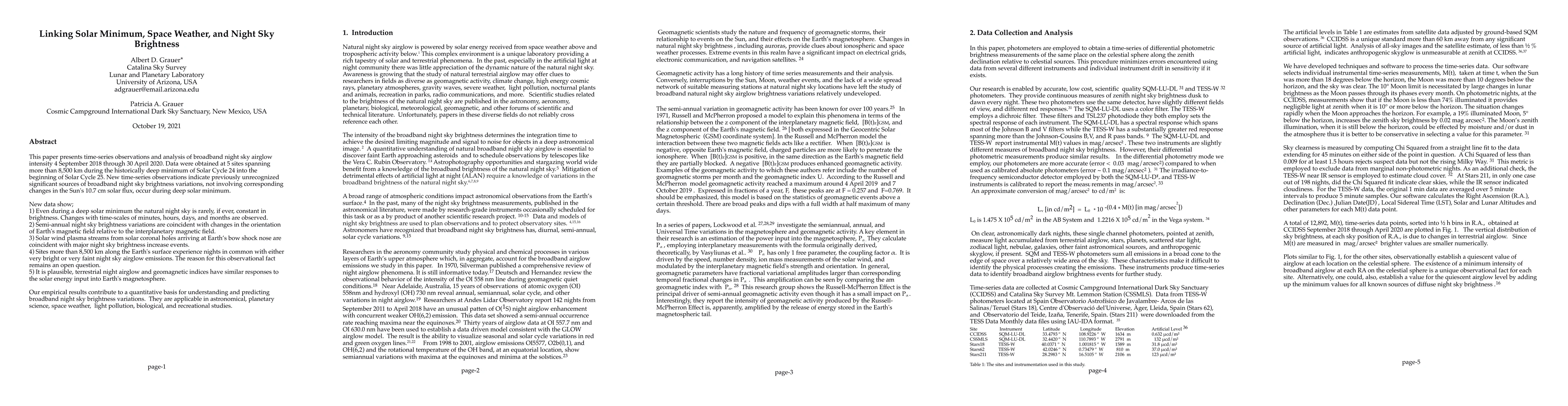 Research reveals significant variations in night sky brightness during solar minimum, influenced by Earth's magnetic field and solar wind plasma streams, with implications for astronomical studies and space weather forecasting.