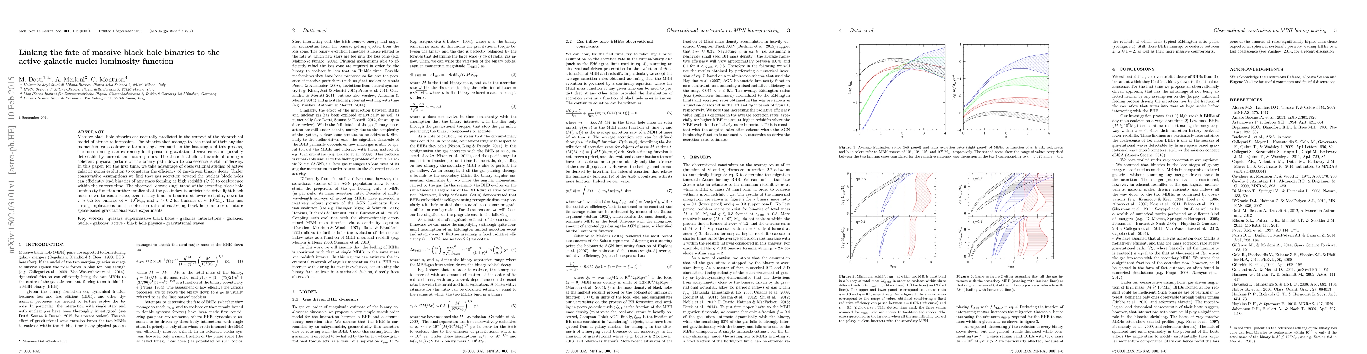 This paper investigates the coalescence of massive black hole binaries and their link to the active galactic nuclei luminosity function, finding that gas accretion can efficiently drive binaries to merge within current timescales, especially at high redshifts. The observed "downsizing" trend suggests that gas inflow is sufficient to facilitate mergers even at lower redshifts, impacting future gravitational wave detection rates.