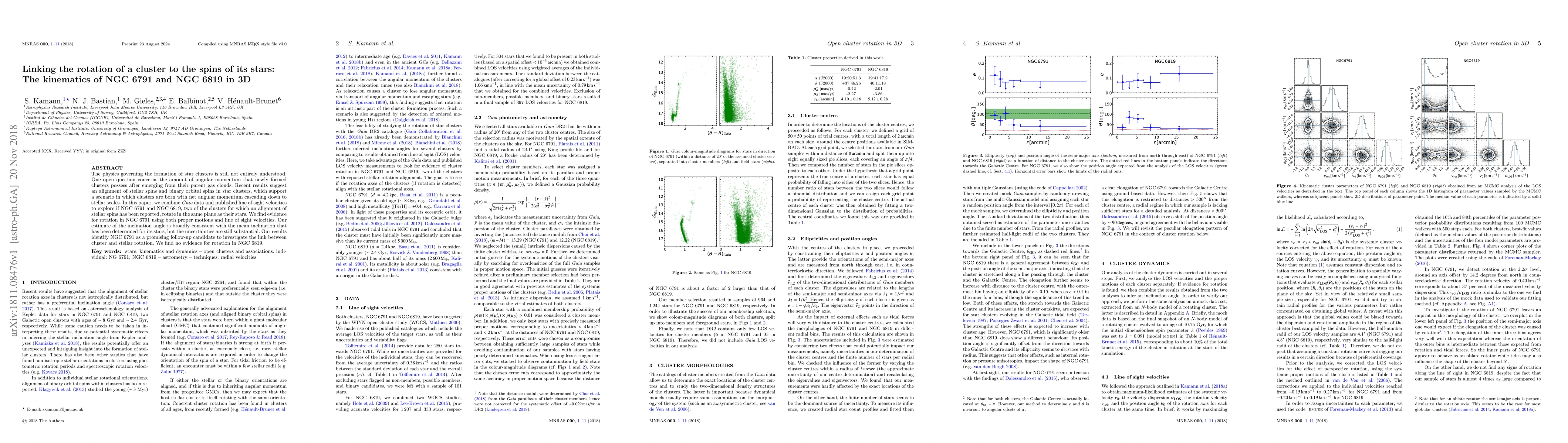 Two star clusters, NGC6791 and NGC6819, show different rotation patterns: NGC6791 rotates in the same plane as its stars, while NGC6819 does not exhibit rotation.