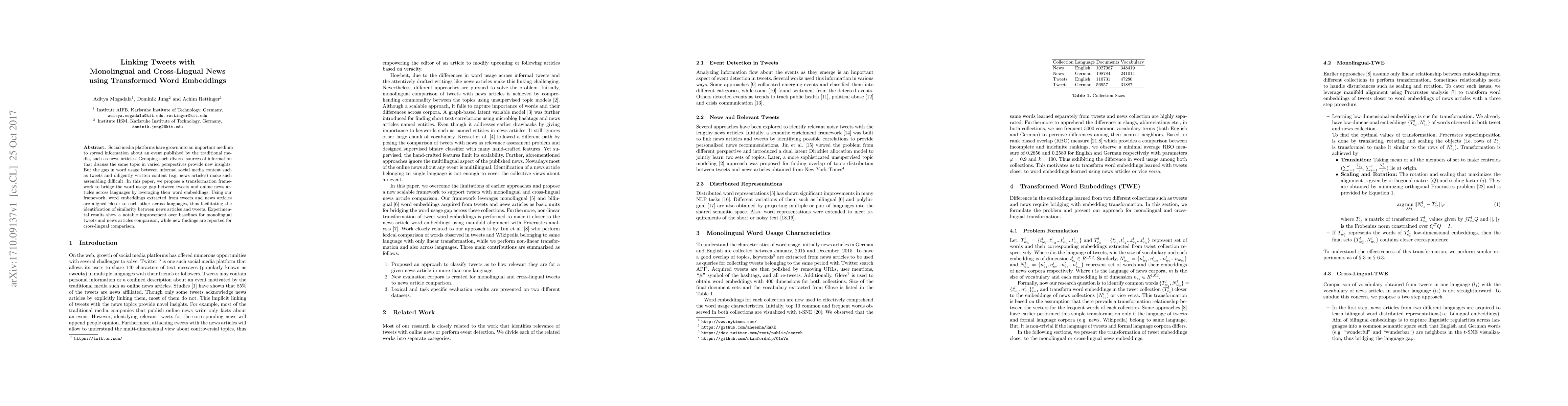 This paper proposes a framework to align word embeddings from tweets and news articles to bridge the linguistic gap between informal social media content and formal news writing, enhancing the identification of similar topics across languages. Experimental results demonstrate significant improvements in both monolingual and cross-lingual comparisons.