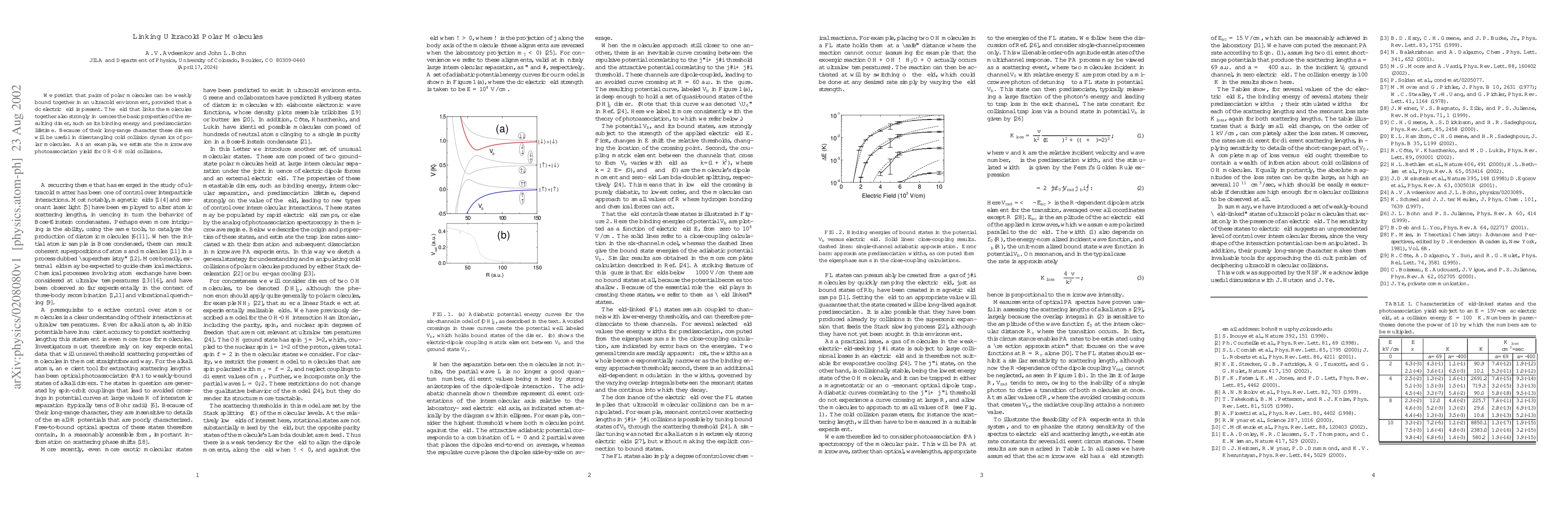 Researchers predict that ultracold polar molecules can form weak bonds when connected by a strong electric field, enabling the study of cold collision dynamics. This phenomenon has potential applications in disentangling cold molecule interactions, such as understanding microwave photoassociation yield.