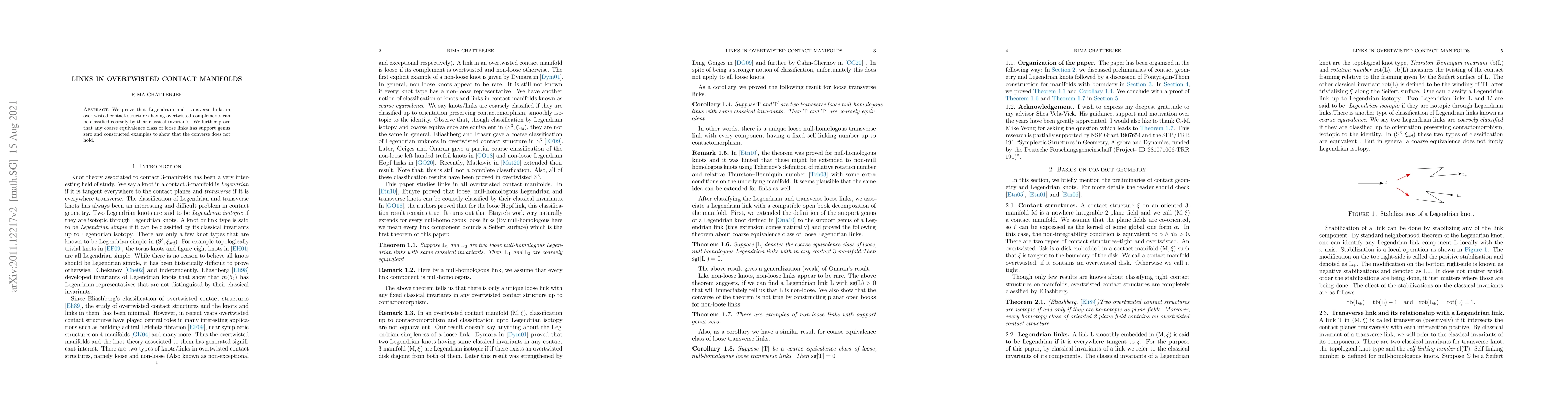 Summary: This paper classifies Legendrian and transverse links in overtwisted contact structures by classical invariants and demonstrates that links with genus zero support can be loosely equivalent, though the converse is not always true.