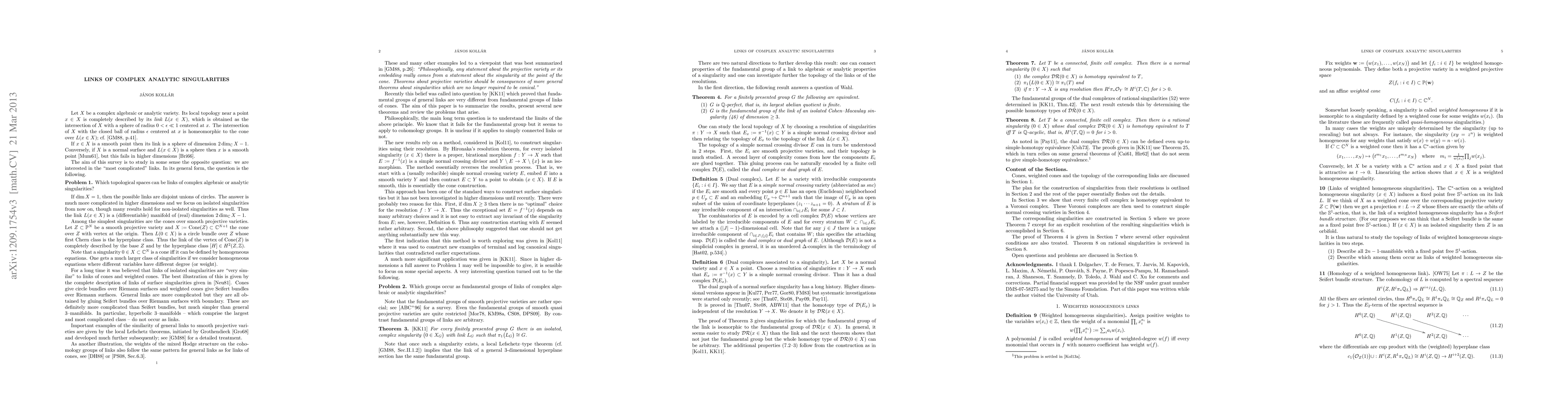 This is a part survey part research paper studying the local topology of complex analytic spaces. We review and strengthen the results of Kapovich--Koll\'ar "Fundamental groups of links of isolated singularities" (1109.4047) and incorporate the paper "Dual graphs of exceptional divisors" (1203.2640) into the current one. A new result is the characterization of the fundamental group of links of Cohen-Macaulay singularities. The last section lists numerous open problems and conjectures. Version 2: Questions 62--65 revised following comments of Shaneson and Maxim. Version 3: Many small changes, especially in section about Questions and Problems.