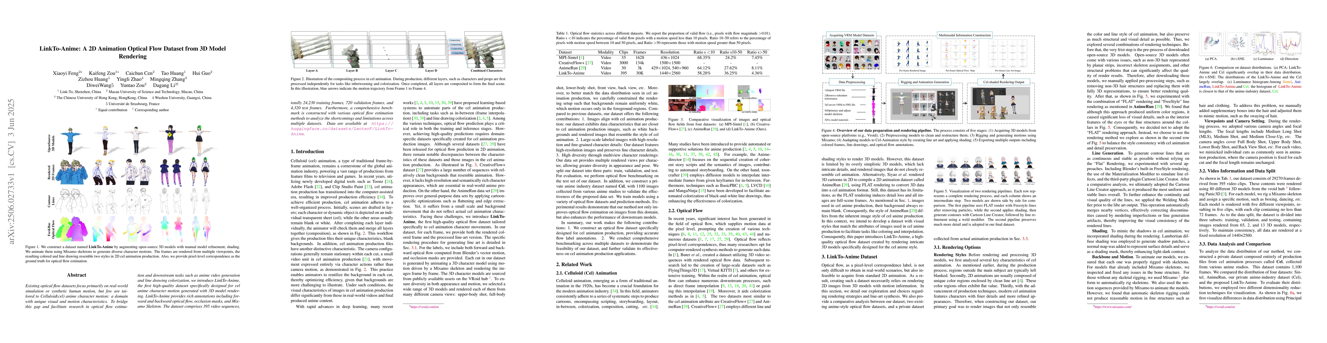 A new dataset called LinkTo-Anime has been created to aid research in optical flow estimation for cel anime character motion, providing 24,230 training frames and a comprehensive benchmark for analysis.