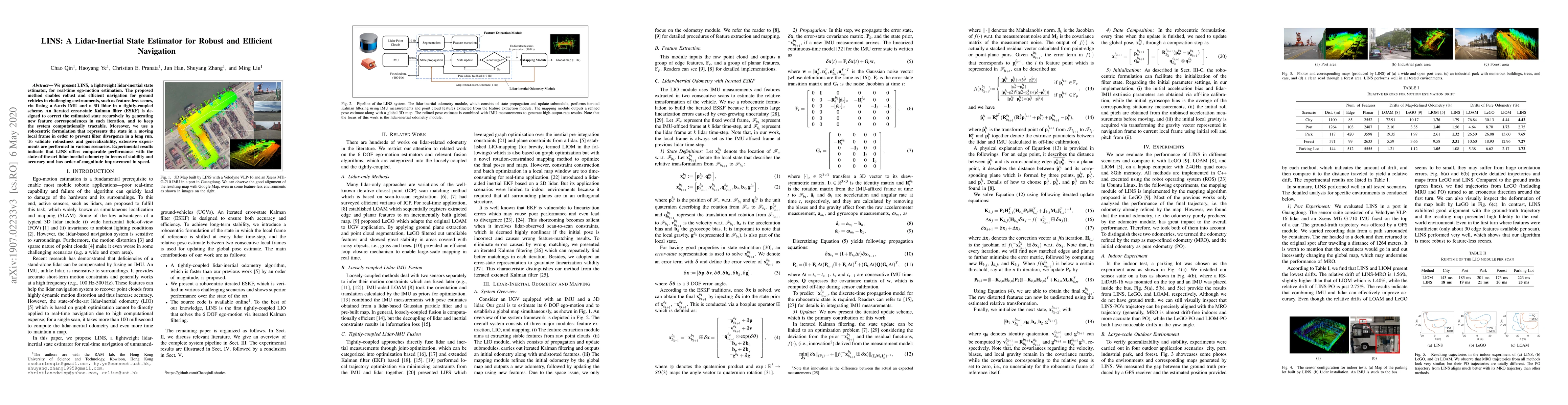 LINS is a lightweight lidar-inertial state estimator for real-time ego-motion estimation, utilizing a tightly-coupled iterated error-state Kalman filter to fuse lidar and IMU data. It demonstrates robust navigation in challenging environments with significant speed improvements over state-of-the-art methods.