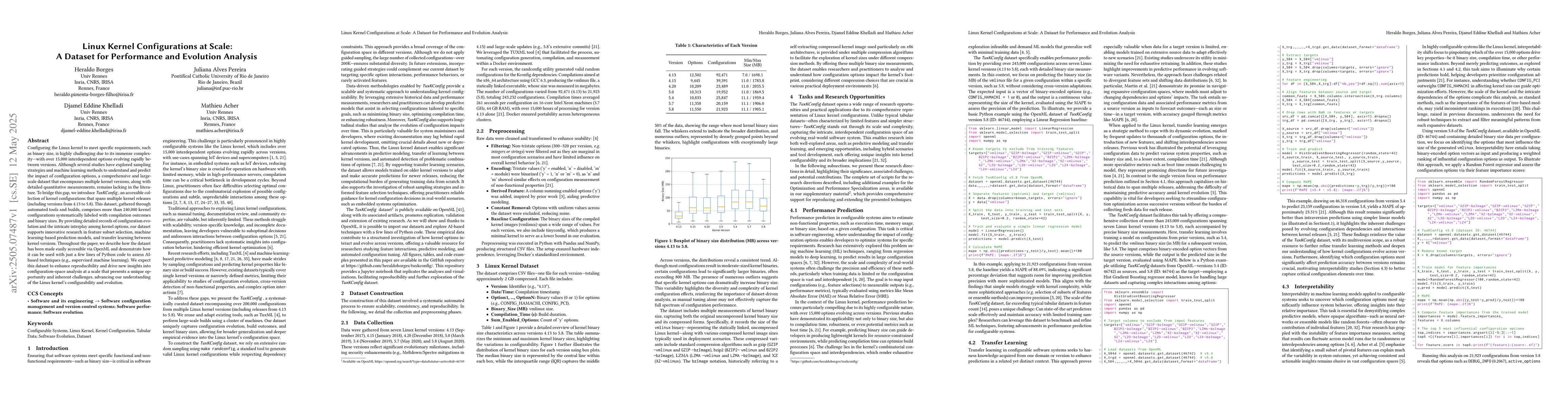 LinuxData, a comprehensive dataset of Linux kernel configurations with detailed quantitative measurements, facilitating research in feature subset selection and machine learning models.