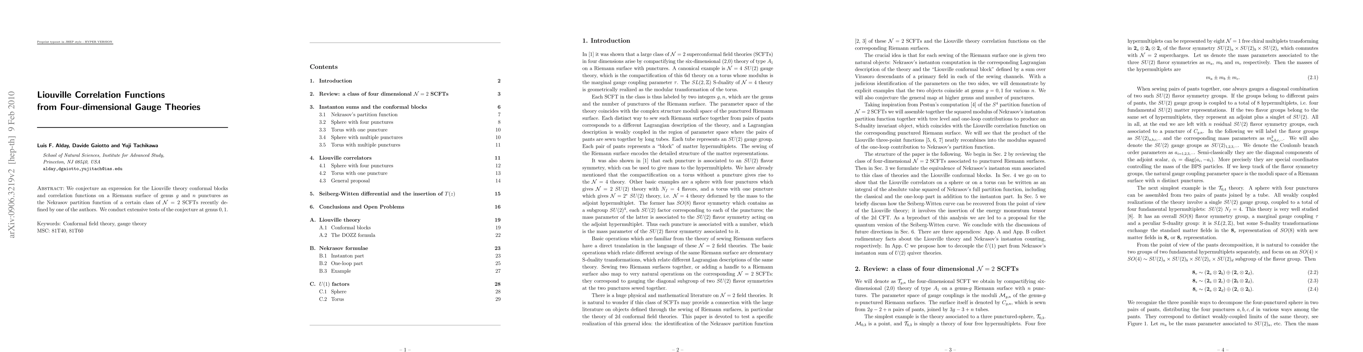 The paper proposes a conjecture linking Liouville theory conformal blocks and correlation functions on complex surfaces to Nekrasov partition functions of specific N=2 supersymmetric conformal field theories (SCFTs). The conjecture is supported by tests at low genus values.