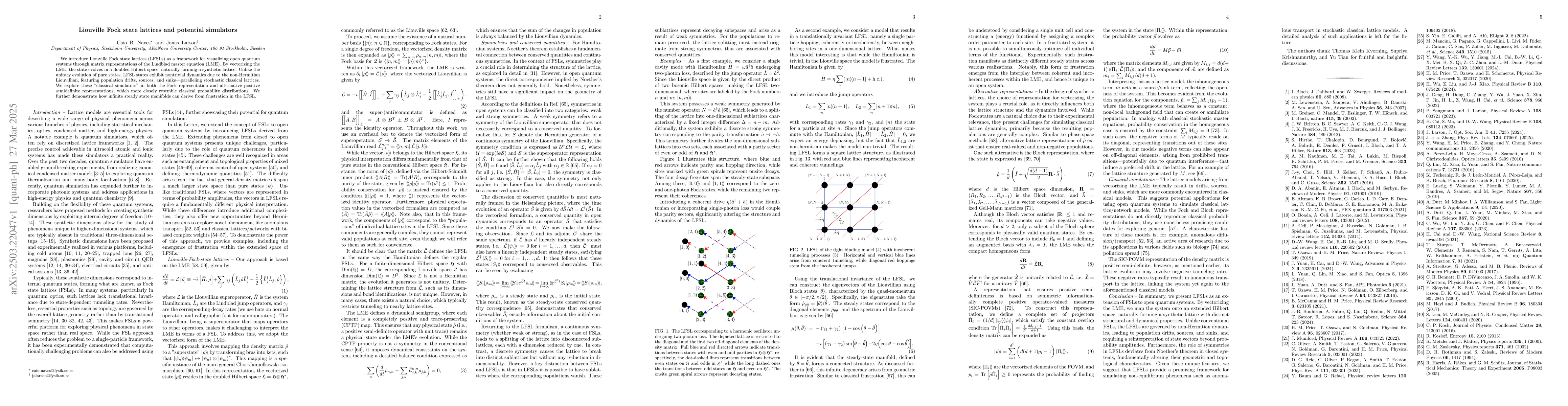 We introduce Liouville Fock state lattices (LFSLs) as a framework for visualizing open quantum systems through matrix representations of the Lindblad master equation (LME). By vectorizing the LME, the state evolves in a doubled Hilbert space, naturally forming a synthetic lattice. Unlike the unitary evolution of pure states, LFSL states exhibit nontrivial dynamics due to the non-Hermitian Liouvillian, featuring population drifts, sources, and sinks--paralleling stochastic classical lattices. We explore these "classical simulators" in both the Fock representation and alternative positive semidefinite representations, which more closely resemble classical probability distributions. We further demonstrate how infinite steady state manifolds can derive from frustration in the LFSL.