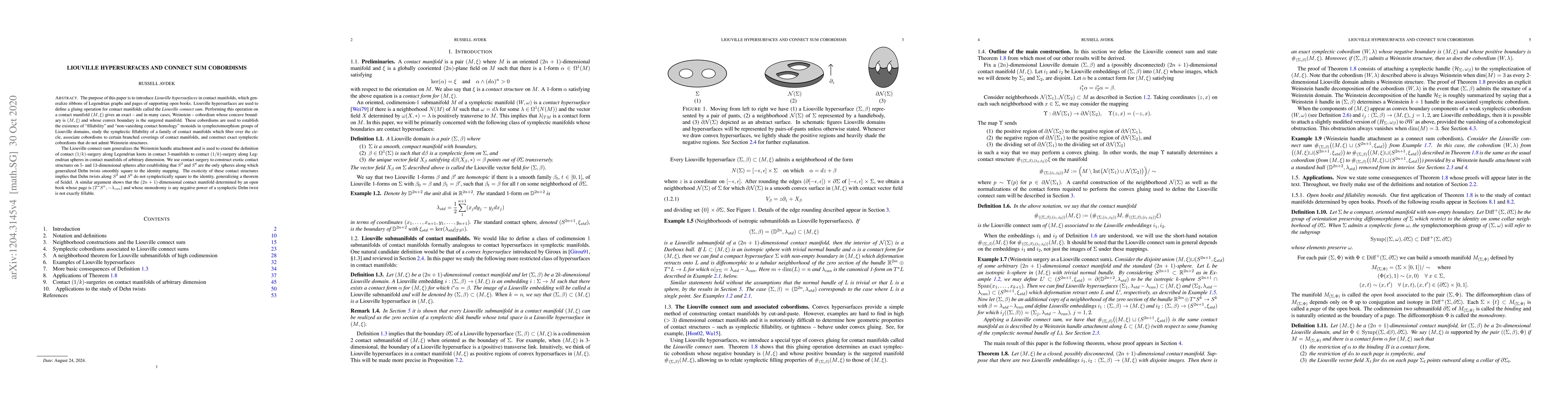 The purpose of this paper is to introduce Liouville hypersurfaces in contact manifolds, which generalize ribbons of Legendrian graphs and pages of supporting open books. Liouville hypersurfaces are used to define a gluing operation for contact manifolds called the Liouville connect sum. Performing this operation on a contact manifold $(M, \xi)$ gives an exact -- and in many cases, Weinstein -- cobordism whose concave boundary is $(M, \xi)$ and whose convex boundary is the surgered manifold. These cobordisms are used to establish the existence of "fillability" and "non-vanishing contact homology" monoids in symplectomorphism groups of Liouville domains, study the symplectic fillability of a family of contact manifolds which fiber over the circle, associate cobordisms to certain branched coverings of contact manifolds, and construct exact symplectic cobordisms that do not admit Weinstein structures. The Liouville connect sum generalizes the Weinstein handle attachment and is used to extend the definition of contact $(1/k)$-surgery along Legendrian knots in contact 3-manifolds to contact $(1/k)$-surgery along Legendrian spheres in contact manifolds of arbitrary dimension. We use contact surgery to construct exotic contact structures on $5$- and $13$-dimensional spheres after establishing that $S^{2}$ and $S^{6}$ are the only spheres along which generalized Dehn twists smoothly square to the identity mapping. The exoticity of these contact structures implies that Dehn twists along $S^{2}$ and $S^{6}$ do not symplectically square to the identity, generalizing a theorem of Seidel. A similar argument shows that the $(2n+1)$-dimensional contact manifold determined by an open book whose page is $(T^{*}S^{n}, -\lambda_{can})$ and whose monodromy is any negative power of a symplectic Dehn twist is not exactly fillable.