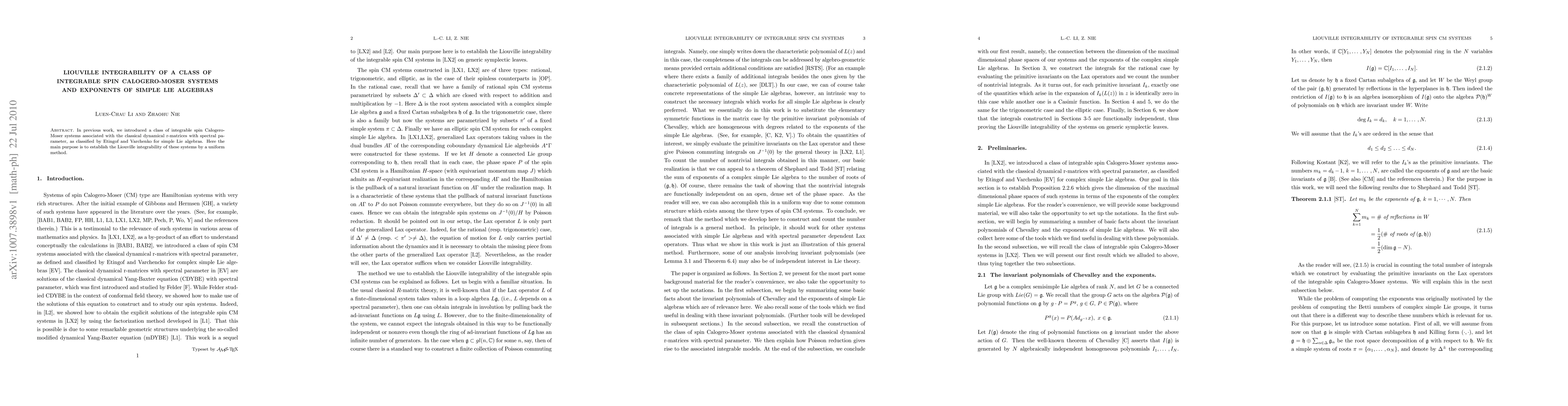In previous work, we introduced a class of integrable spin Calogero-Moser systems associated with the classical dynamical r-matrices with spectral parameter, as classified by Etingof and Varchenko for simple Lie algebras. Here the main purpose is to establish the Liouville integrability of these systems by a uniform method.