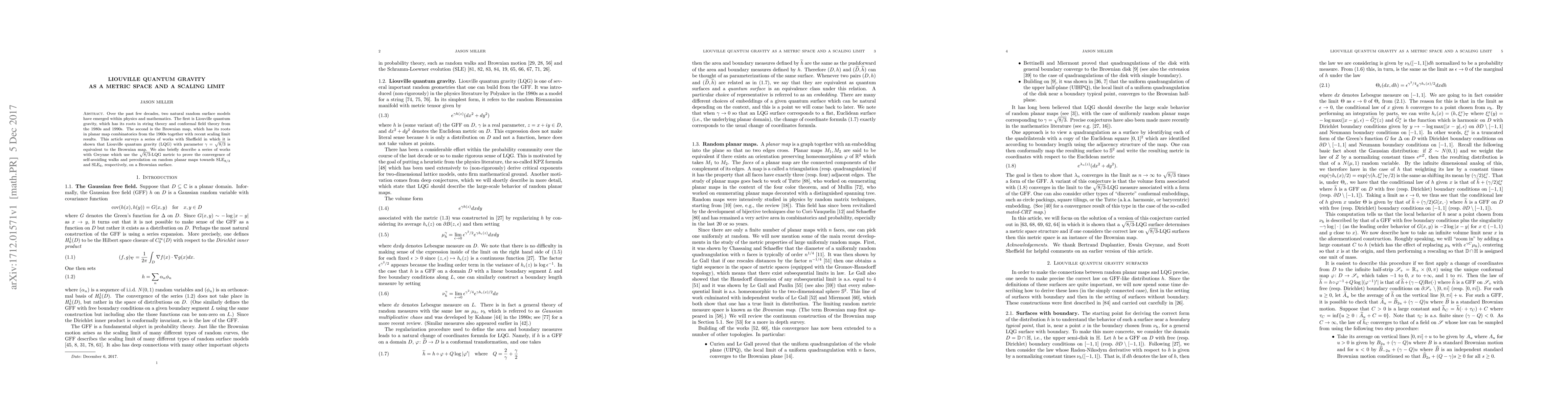 This paper surveys the equivalence between Liouville quantum gravity (LQG) with parameter $\gamma=\sqrt{8/3}$ and the Brownian map, and discusses the convergence of self-avoiding walks and percolation on random planar maps to SLE processes on a Brownian surface.