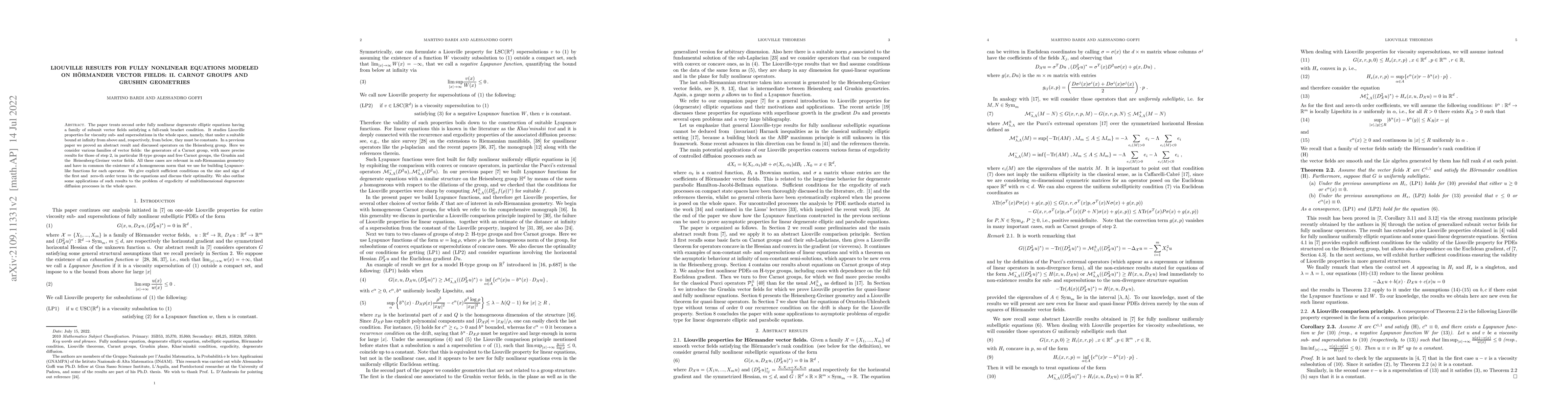 This paper investigates second-order fully nonlinear degenerate elliptic equations associated with H\"ormander vector fields, focusing on Liouville properties for viscosity solutions in whole space. It extends previous work on the Heisenberg group to Carnot groups, Grushin geometries, and other relevant vector field families, providing explicit conditions for their optimality and discussing applications to ergodicity in diffusion processes.