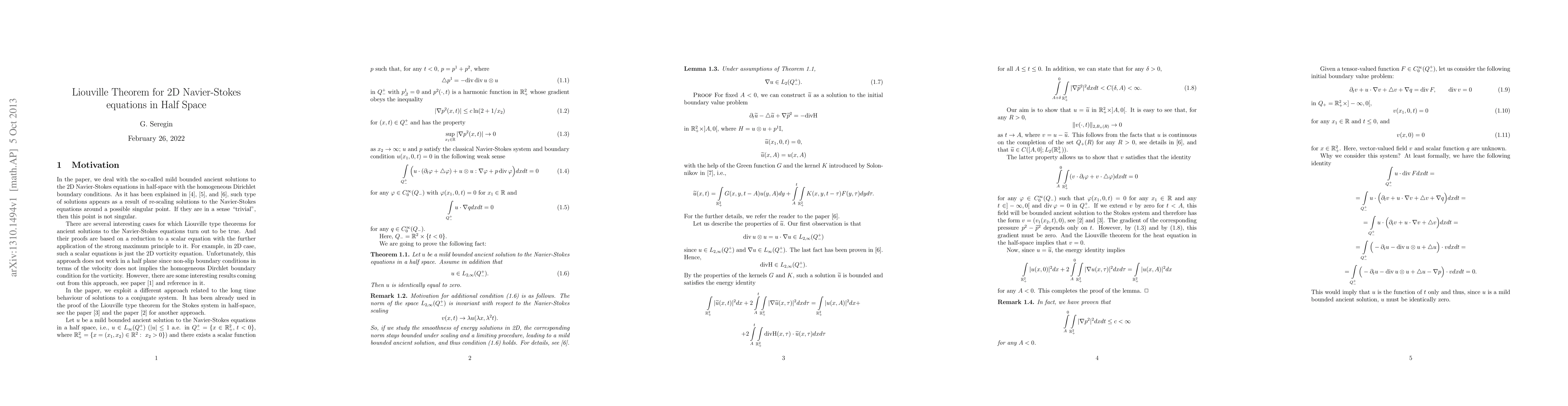 Summary: This research establishes a Liouville theorem for mild bounded ancient solutions to the 2D Navier-Stokes equations in the half space, demonstrating that such solutions must be trivial.