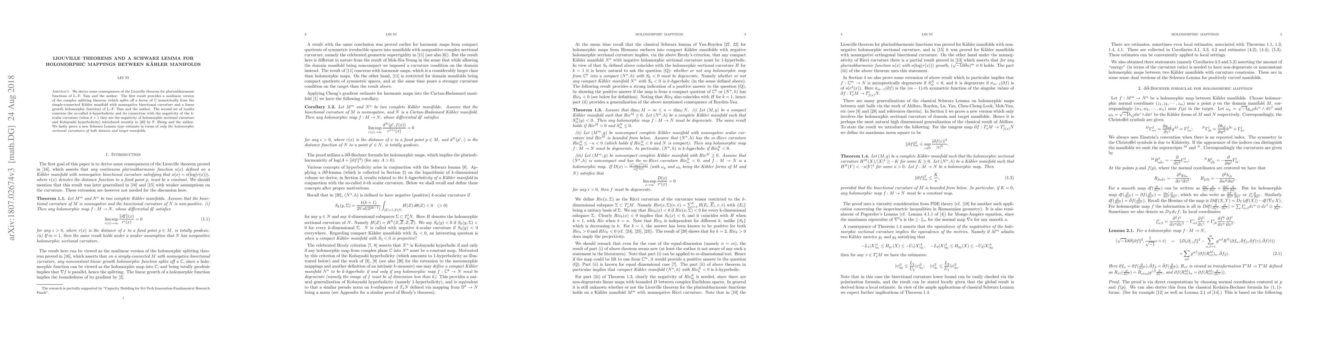 We derive some consequences of the Liouville theorem for plurisubharmonic functions of L.-F. Tam and the author. The first result provides a nonlinear version of the complex splitting theorem (which splits off a factor of $\mathbb{C}$ isometrically from the simply-connected K\"ahler manifold with nonnegative bisectional curvature and a linear growth holomorphic function) of L.-F. Tam and the author. The second set of results concerns the so-called $k$-hyperbolicity and its connection with the negativity of the $k$-scalar curvature (when $k=1$ they are the negativity of holomorphic sectional curvature and Kobayashi hyperbolicity) introduced recently by F. Zheng and the author. We lastly prove a new Schwarz Lemma type estimate in terms of {\it only the holomorphic sectional curvatures of both domain and target manifolds}.