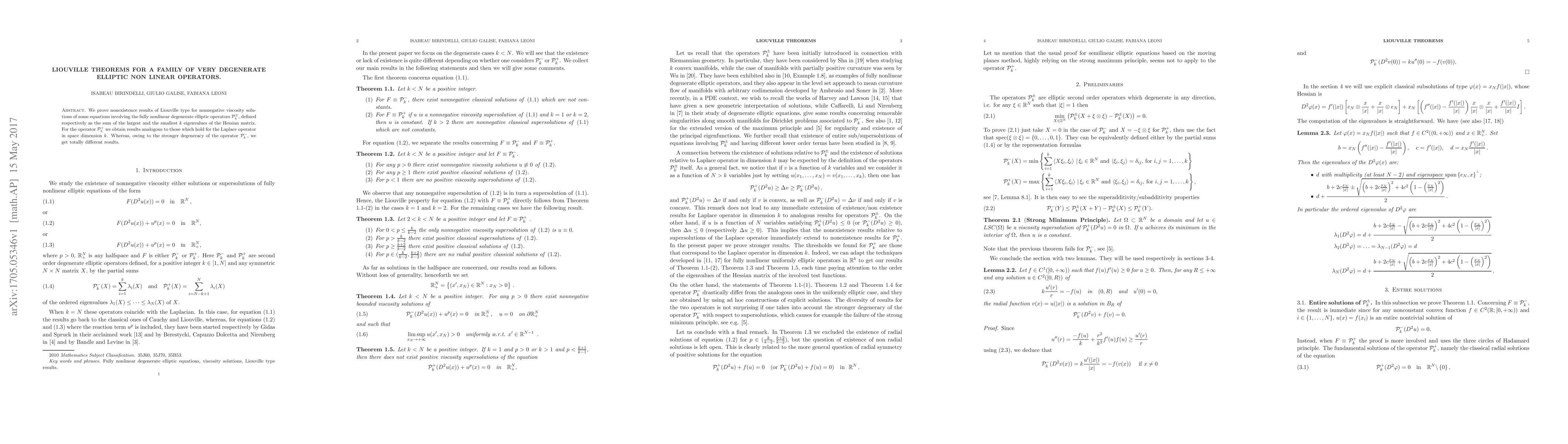 We prove nonexistence results of Liouville type for nonnegative viscosity solutions of some equations involving the fully nonlinear degenerate elliptic operators ${\cal P}^\pm_k$, defined respectively as the sum of the largest and the smallest $k$ eigenvalues of the Hessian matrix. For the operator ${\cal P}^+_k$ we obtain results analogous to those which hold for the Laplace operator in space dimension $k$. Whereas, owing to the stronger degeneracy of the operator ${\cal P}^-_k$, we get totally different results.