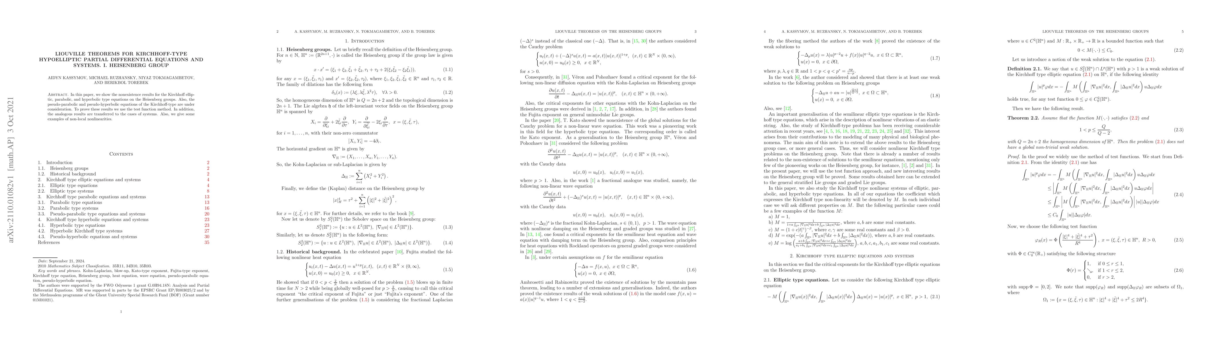 This paper proves nonexistence results for Kirchhoff-type hypoelliptic PDEs on Heisenberg groups, using the test function method, with implications for systems and non-local nonlinearities.
