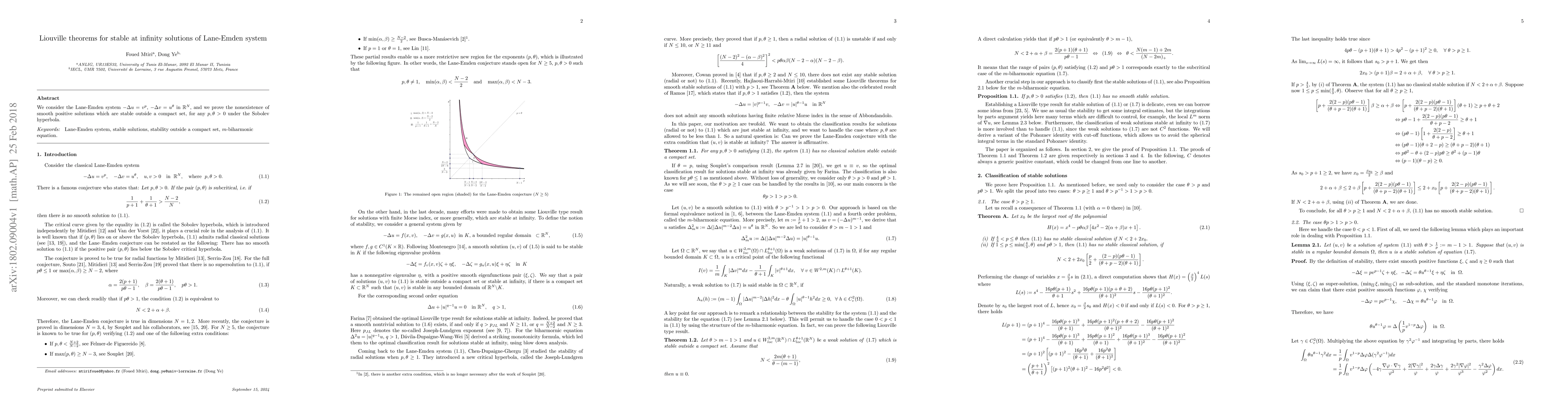This paper proves the nonexistence of smooth positive solutions to the Lane-Emden system in $\mathbb{R}^N$ that are stable at infinity, under the Sobolev hyperbola for any $p, \theta > 0$. The result establishes a Liouville theorem for such solutions.