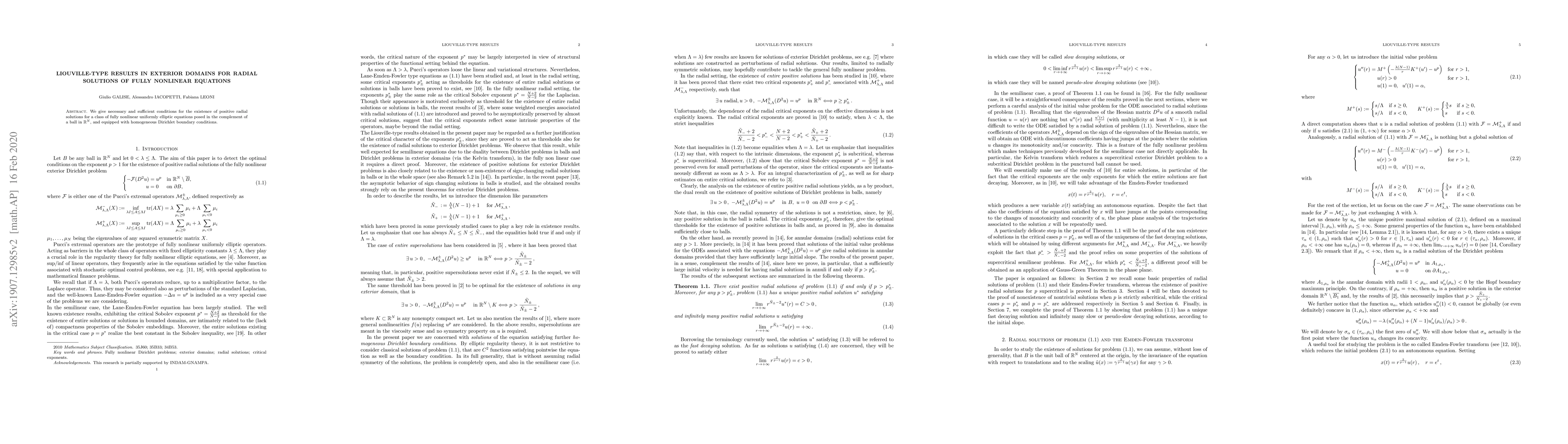 Summary: This paper establishes necessary and sufficient conditions for the existence of positive radial solutions to fully nonlinear uniformly elliptic equations in exterior domains, specifically in the complement of a ball in $\mathbb R^N$, with homogeneous Dirichlet boundary conditions.