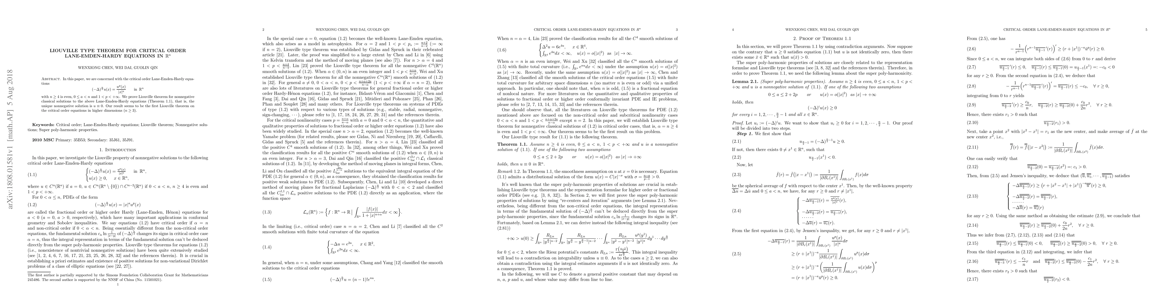 In this paper, we are concerned with the critical order Lane-Emden-Hardy