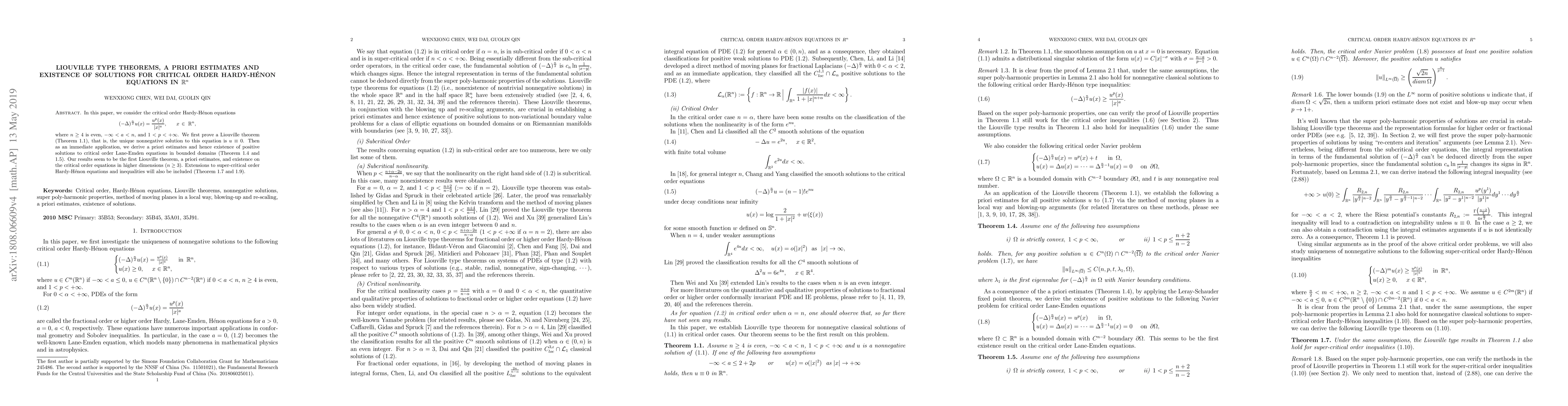 This paper proves a Liouville theorem for critical order Hardy-Hénon equations, showing that the only nonnegative solution is zero. It also derives a priori estimates and establishes the existence of positive solutions for critical order Lane-Emden equations in bounded domains.