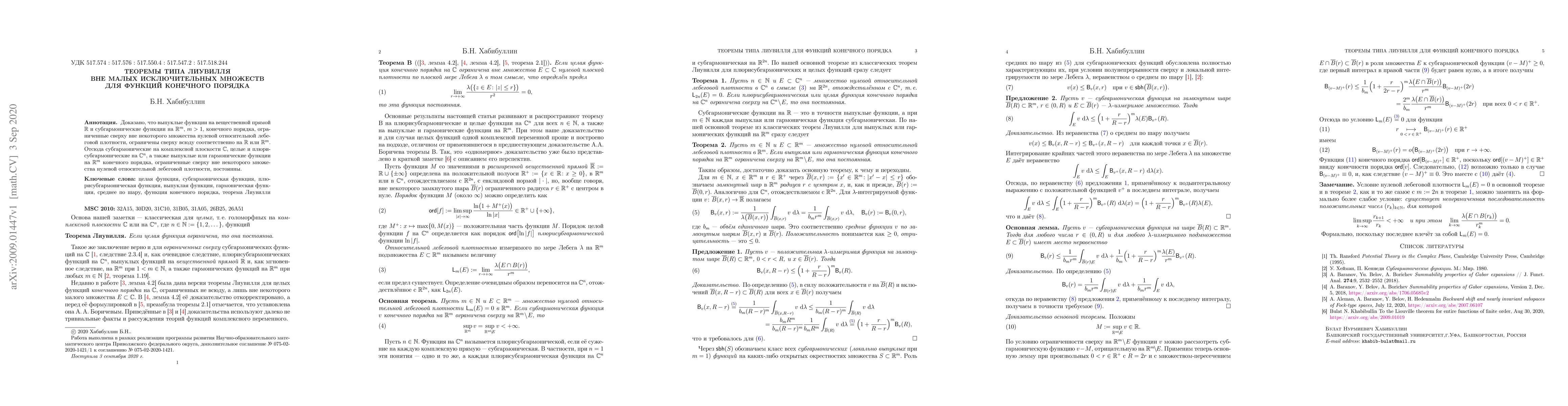 This research paper proves that certain types of functions with finite order are bounded above everywhere if they are not unbounded on a set of small density, leading to new implications for harmonic and convex functions in complex analysis.