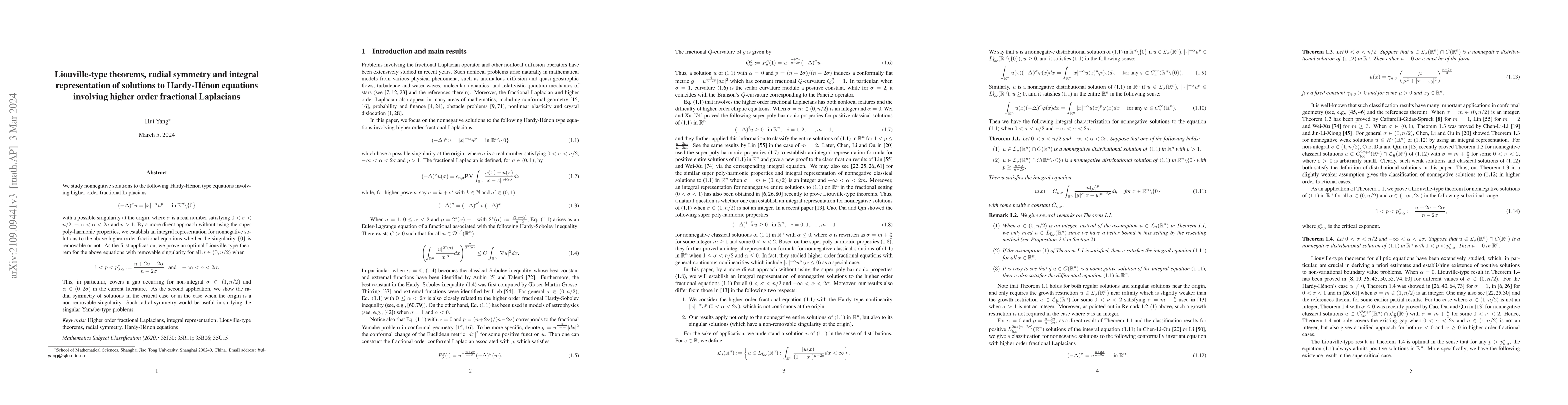 The research extends existing Liouville-type theorems and radial symmetry results to higher order fractional Laplacian equations, filling a gap in the literature for non-integral \(\sigma\) and covering a wider range of \(\alpha\) values.