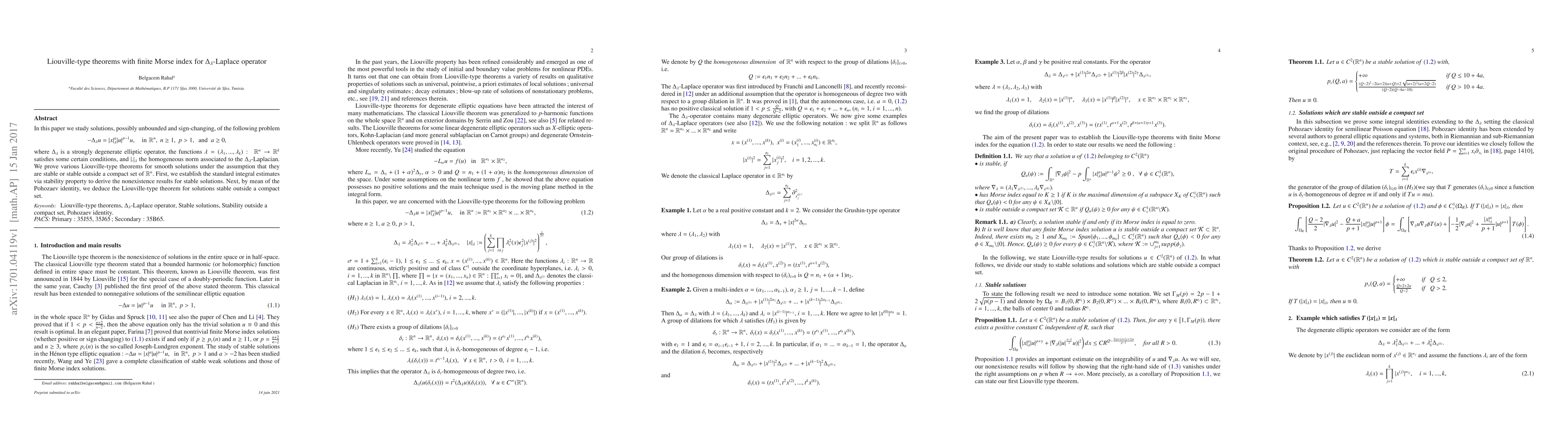 This paper proves Liouville-type theorems for solutions of a strongly degenerate elliptic operator, specifically for the �_λ-Laplacian, under stability assumptions.