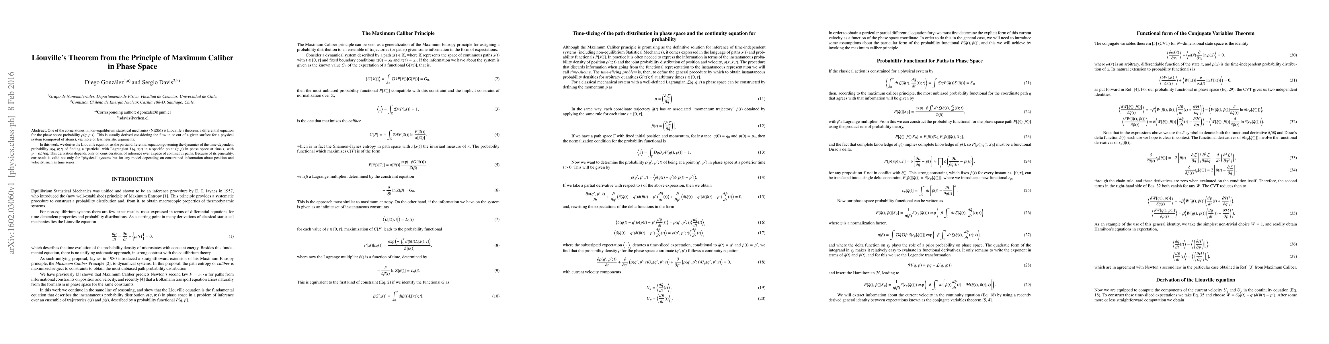 One of the cornerstones in non--equilibrium statistical mechanics (NESM) is Liouville's theorem, a differential equation for the phase space probability $\rho(q,p; t)$. This is usually derived considering the flow in or out of a given surface for a physical system (composed of atoms), via more or less heuristic arguments. In this work, we derive the Liouville equation as the partial differential equation governing the dynamics of the time-dependent probability $\rho(q, p; t)$ of finding a "particle" with Lagrangian $L(q, \dot{q}; t)$ in a specific point $(q, p)$ in phase space at time $t$, with $p=\partial L/\partial \dot{q}$. This derivation depends only on considerations of inference over a space of continuous paths. Because of its generality, our result is valid not only for "physical" systems but for any model depending on constrained information about position and velocity, such as time series.