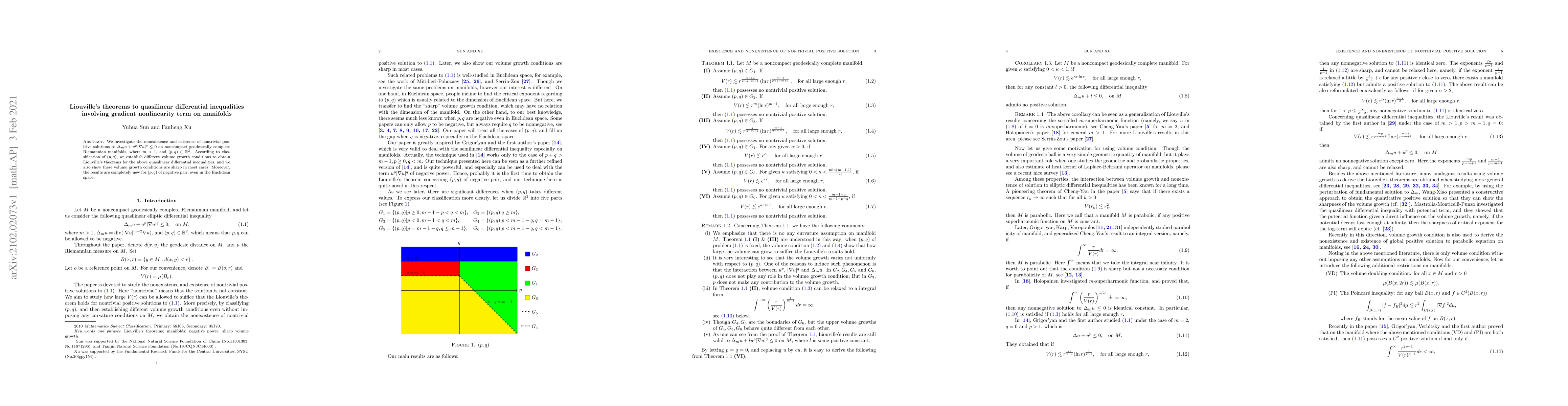 This paper investigates nonexistence and existence of solutions to a quasilinear differential inequality on manifolds, establishing Liouville's theorems with different volume growth conditions for various cases.